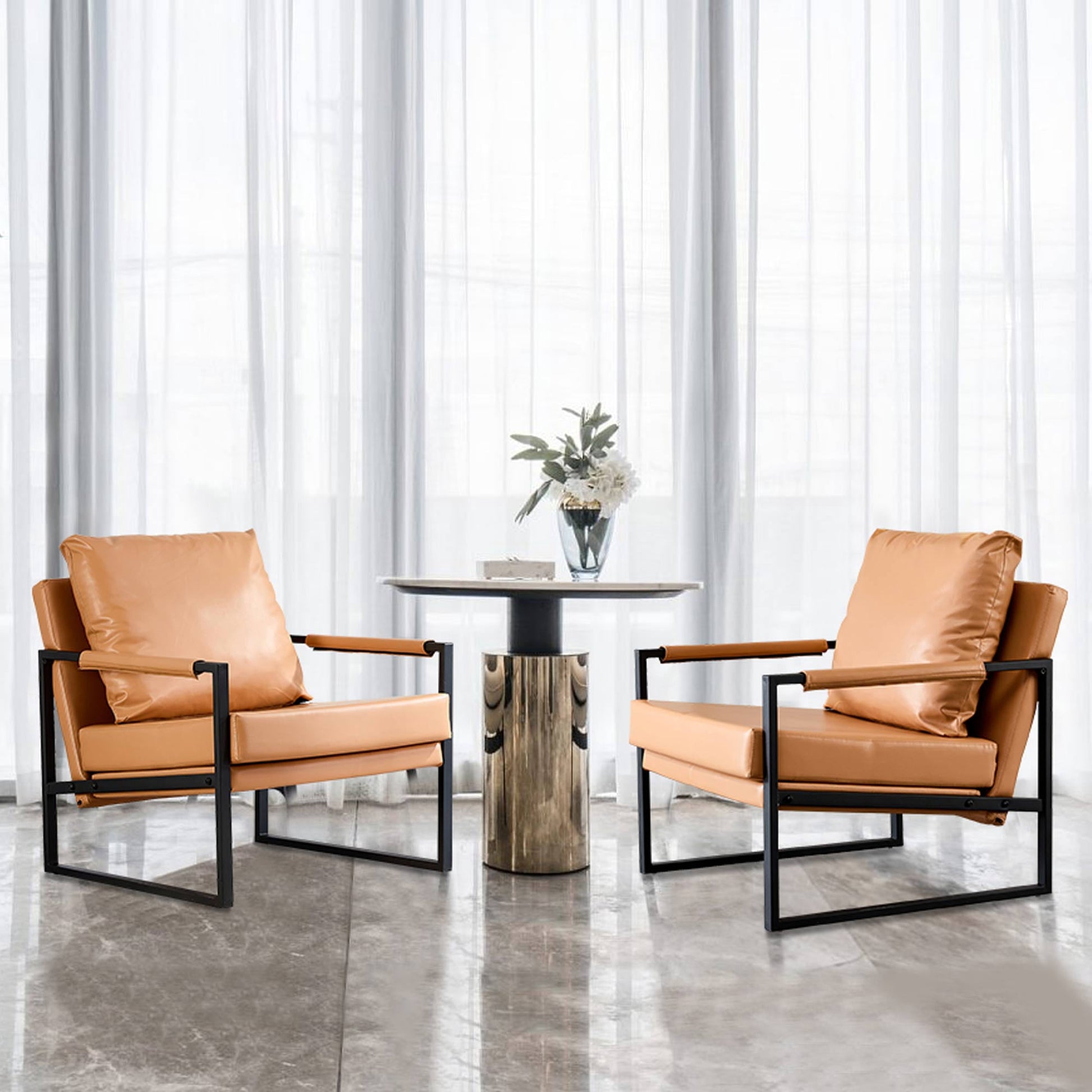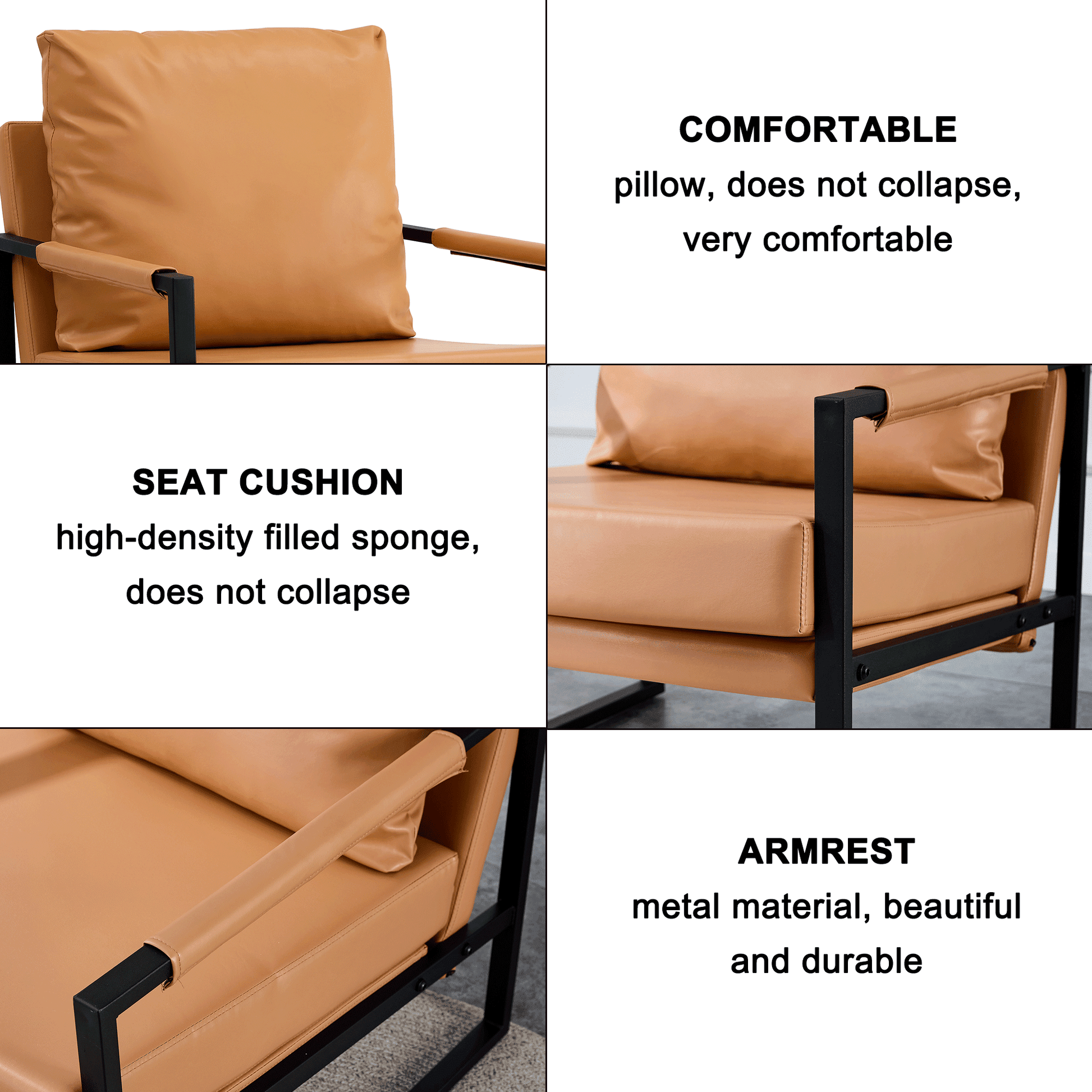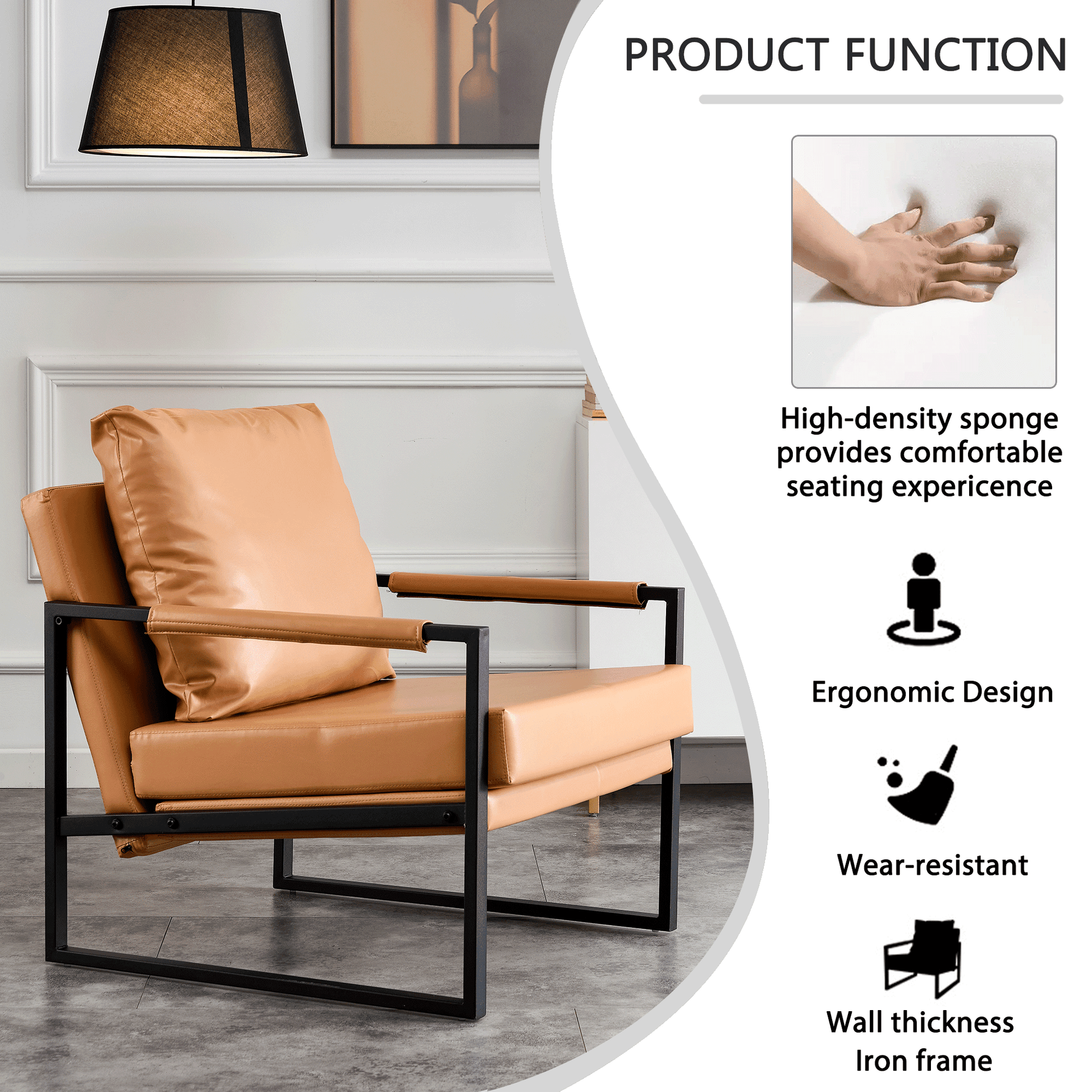 Mid-Century Accent Chair Metal Frame Faux Leather Reading Arm Chair for Living Room and Bedroom, Orange