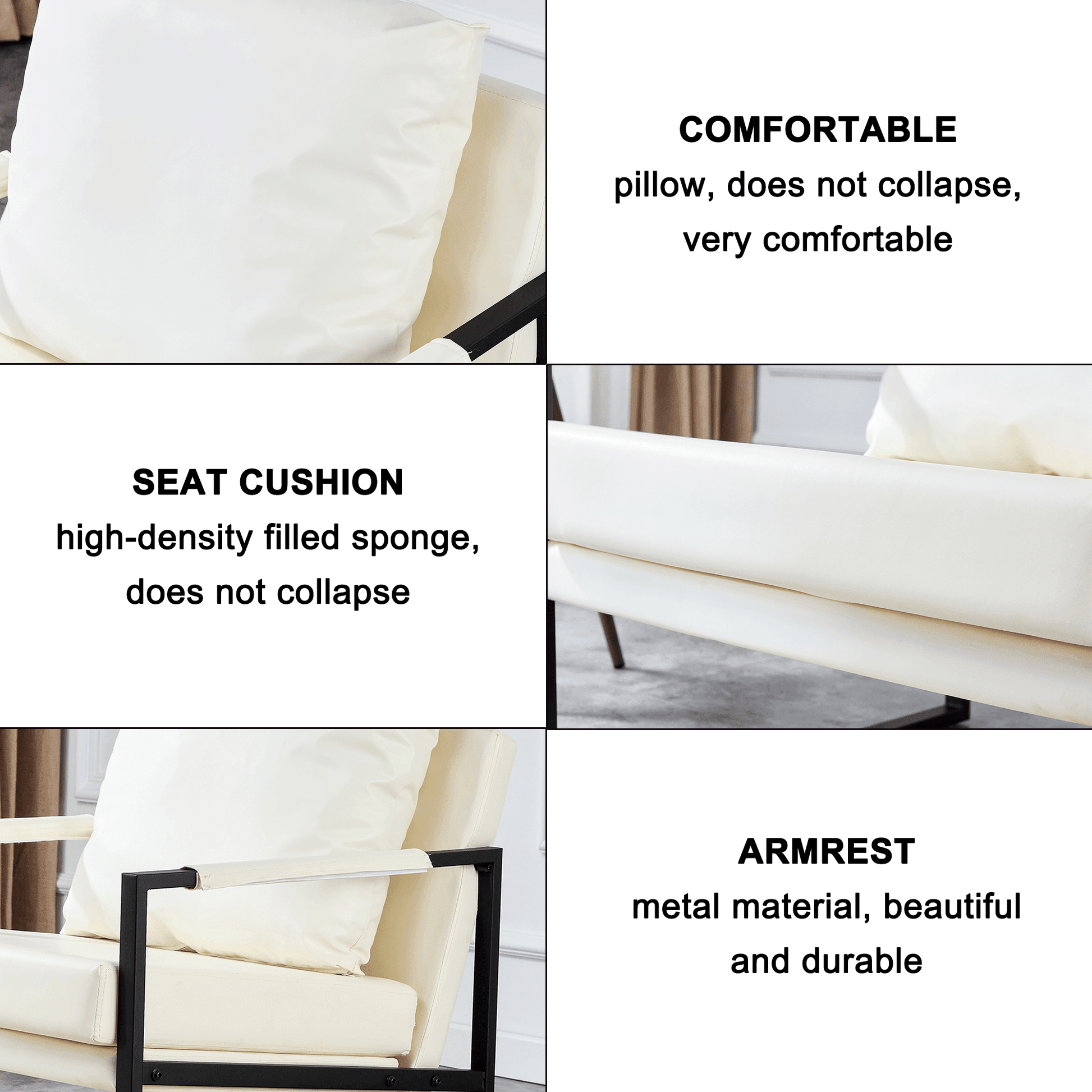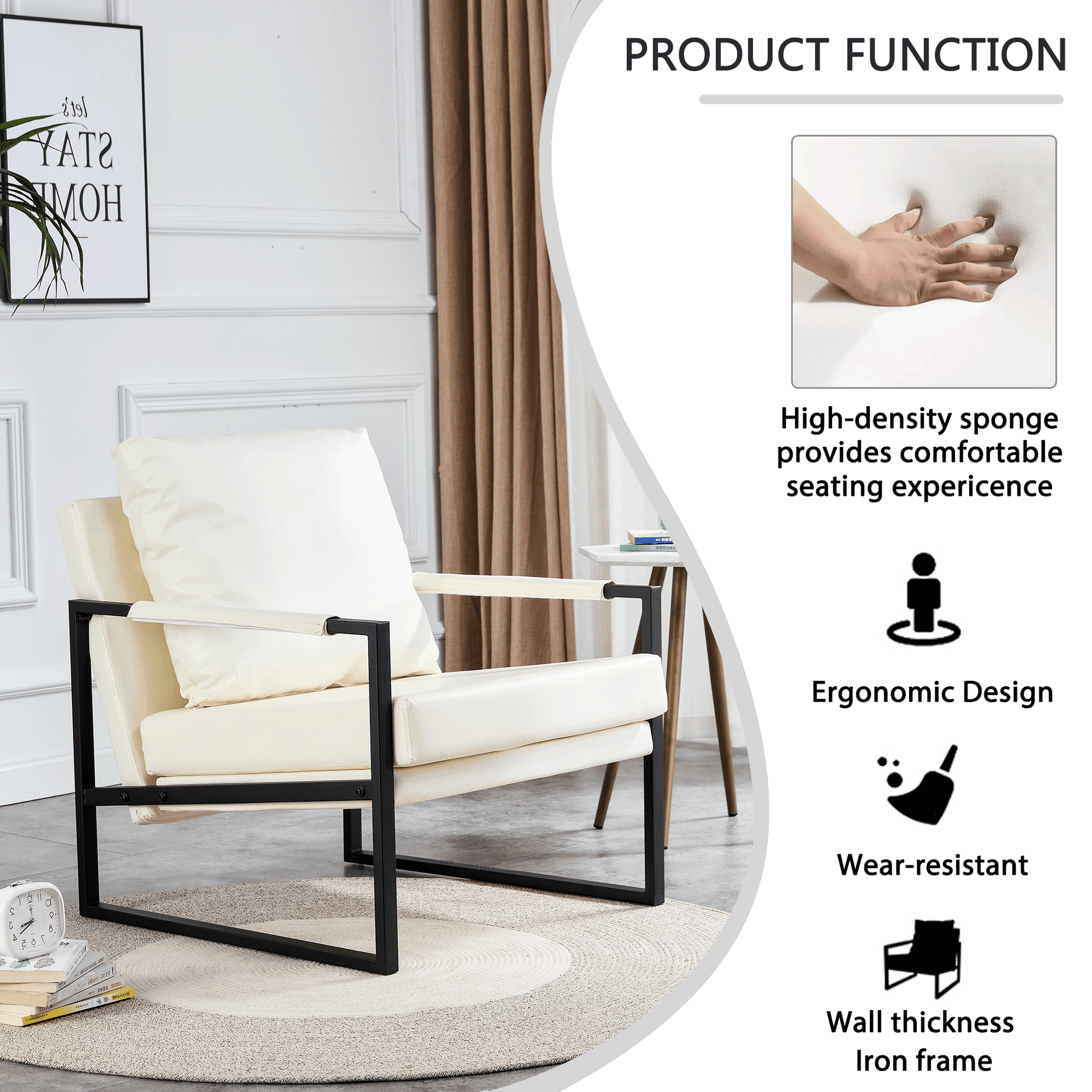 - Sturdy & Durable--Crafted with wear-resistant faux leather and a high-quality metal frame, it can withstand everyday use. With a weight capacity of 300 lbs, this living room chair strength and reliability.