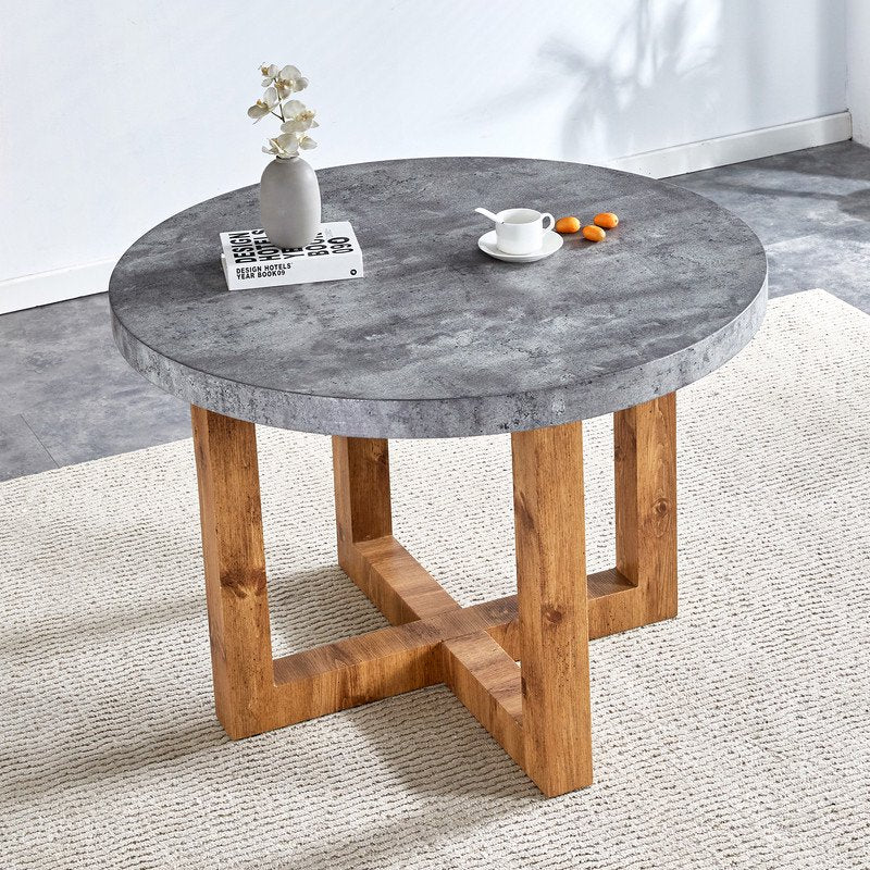 Modern and Practical Circular Dining Table.Sudica 42 inch Coffee Table with Gray Tabletop for Living Room and Bedroom