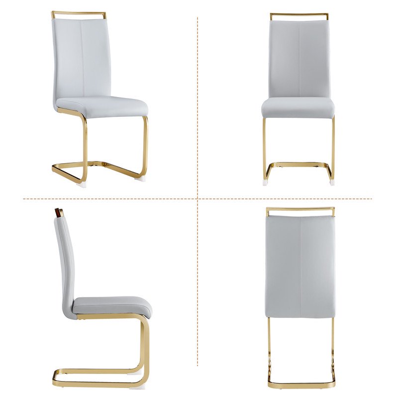 Modern Dining Chairs Set of 4 Sudica Faux Leather Dining Room Chairs with Golden Legs High Back Chair,Light Grey