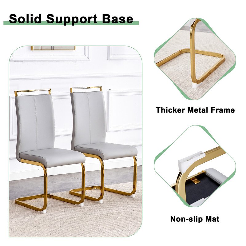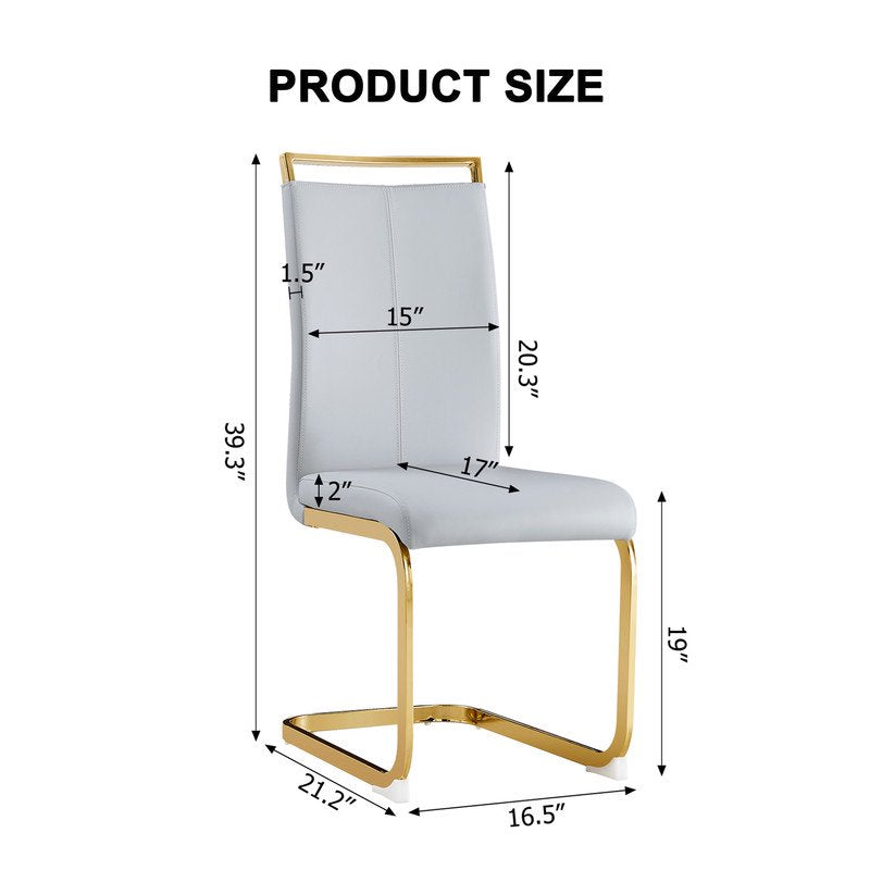 Indulge in ultimate comfort with our exquisite dining chair. Crafted with golden metal legs, this dining room chairs ensures durability and stability. The tall backrest gently soothes your back muscles, while the high-density elastic sponge guarantees a luxurious sitting experience. Wrapped in breathable faux leather, it adds an extra layer of comfort and relaxation. Perfect for homes, restaurants, and cafes, this kitchen chair is a stylish and functional addition to any space.