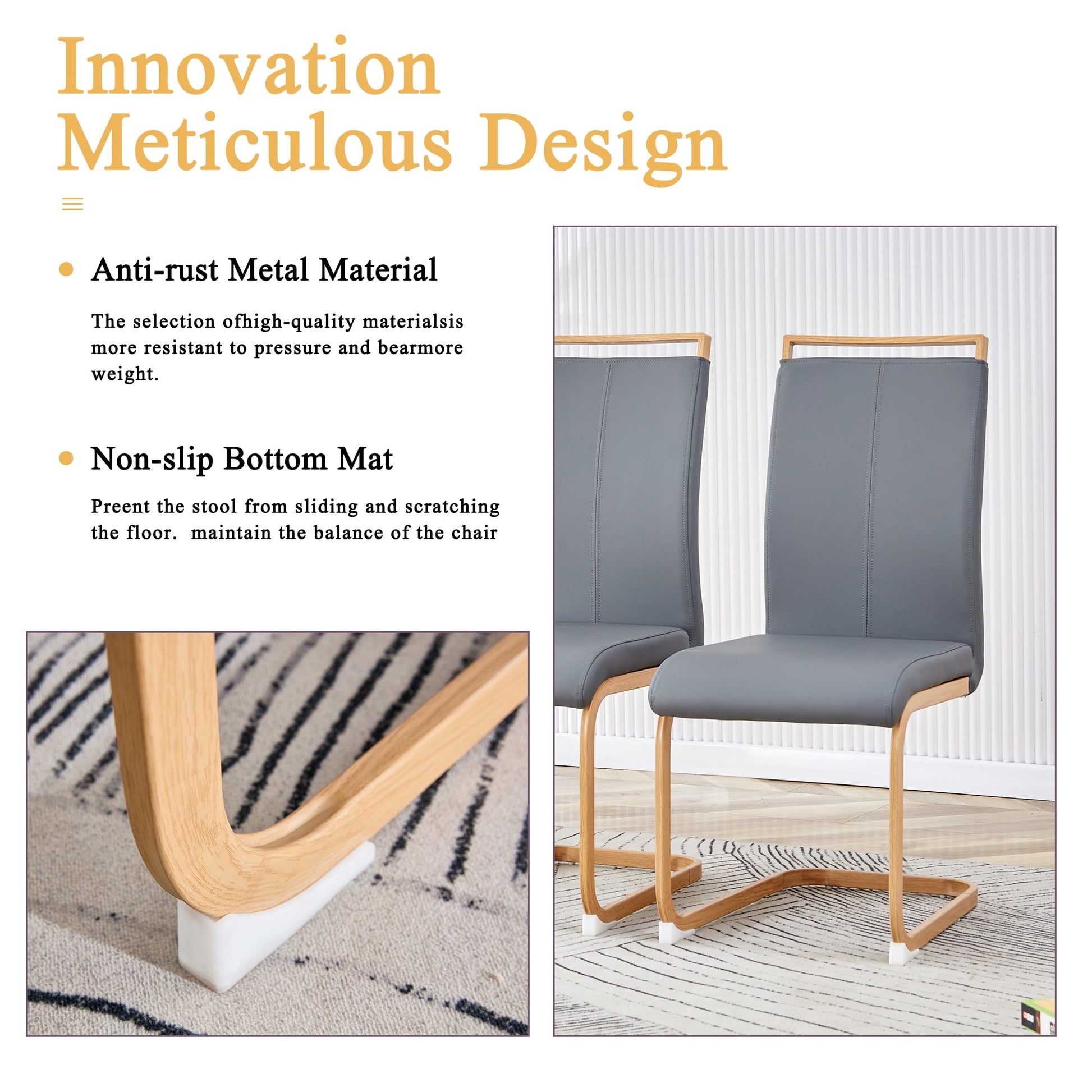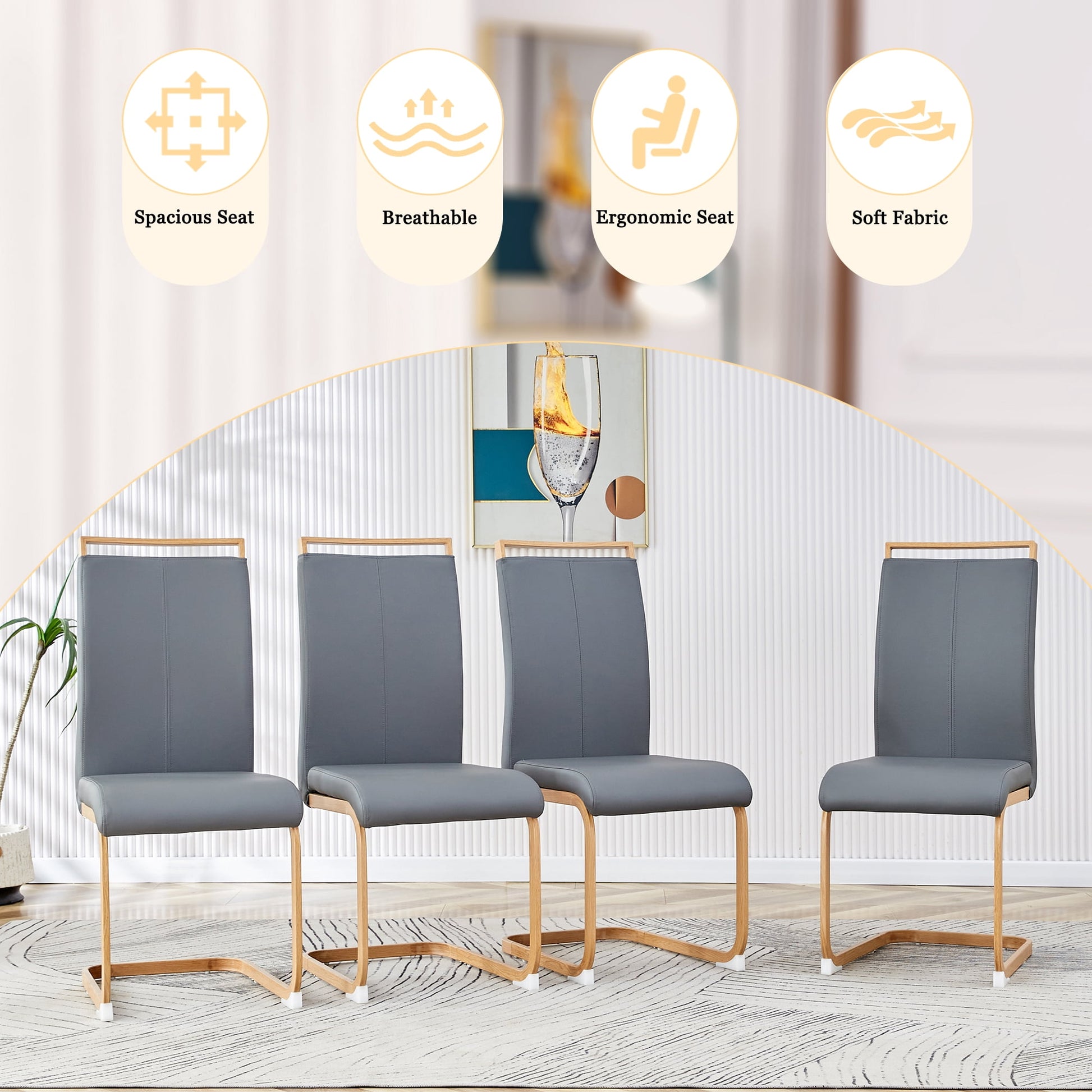 - ¡¾Robust and Stylish¡¿ Crafted with a sturdy frame, these dining room chairs offer durability and stability. The sleek C-shaped wood grain chrome base not only adds a traditional touch to your space but also ensures a strong foundation for years of reliable use. To protect your floors from scratches and scuffs, the chairs are thoughtfully equipped with anti-scratch plastic feet.