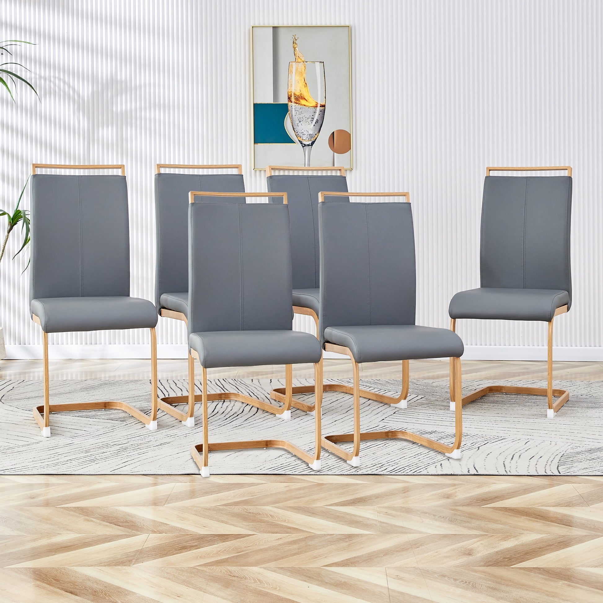 Modern Dining Chairs Set of 6, Sudica Faux Leather Dining Room Chairs with Wood Grain Metal Legs for Kitchen,Gray