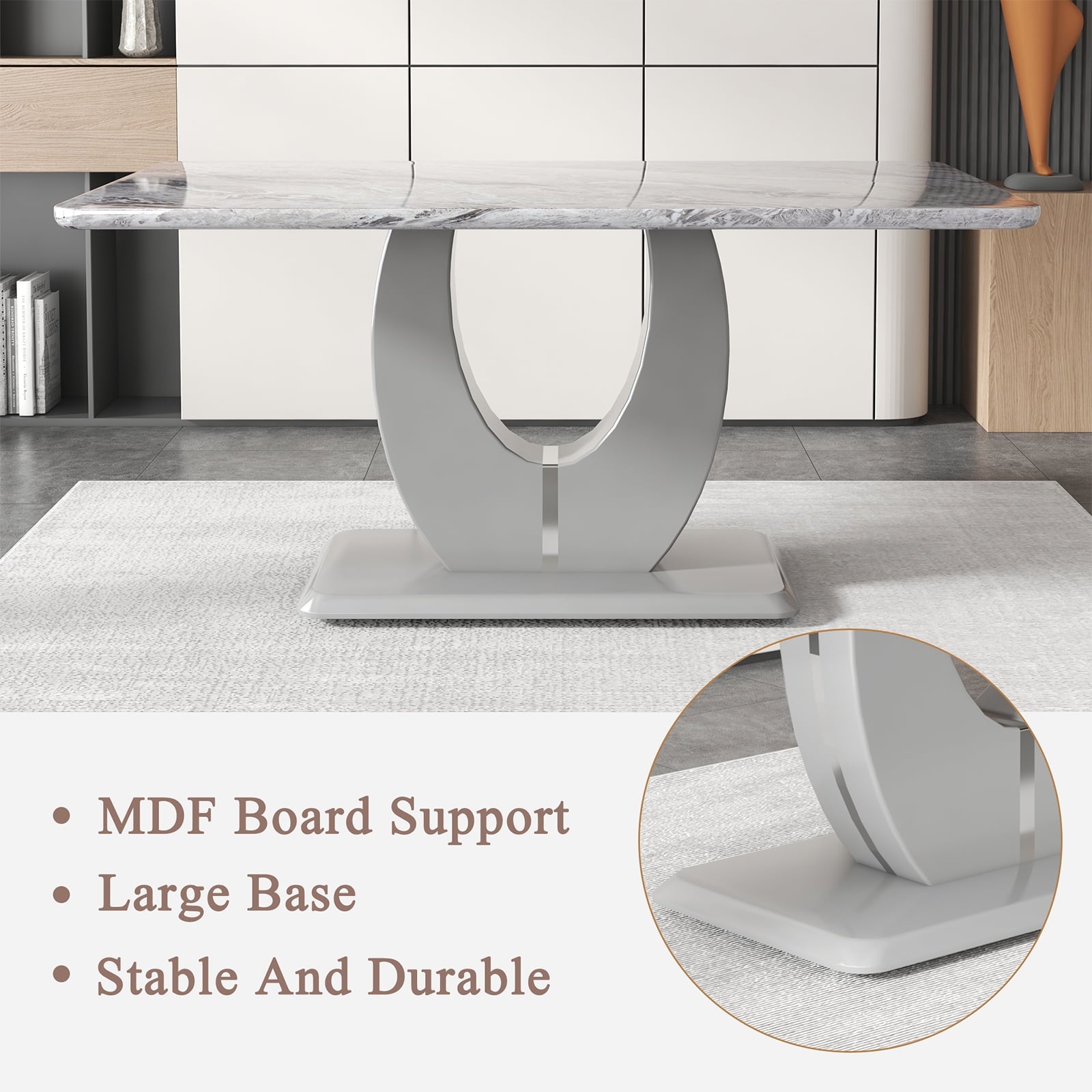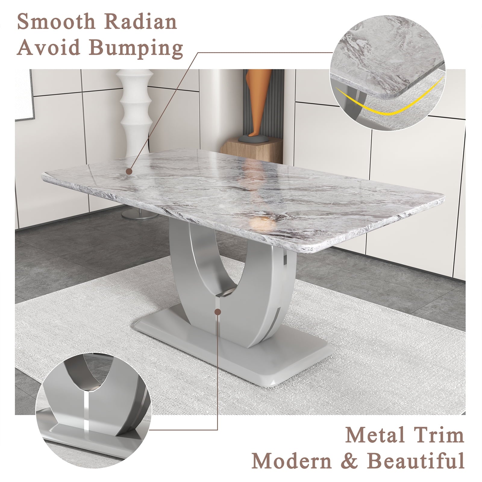 - ¡¾Modern Dining Room Table Set¡¿Create cherished memories with your family around our modern dining table set. Designed to bring joy and togetherness, this set allows you to enjoy entertaining moments all together. The simplistic faux marble design adds a touch of elegance to your kitchen and dining room, creating a modern and stylish ambiance. Perfect for seating four to six people, this set is the ideal choice for family discussions and gatherings.