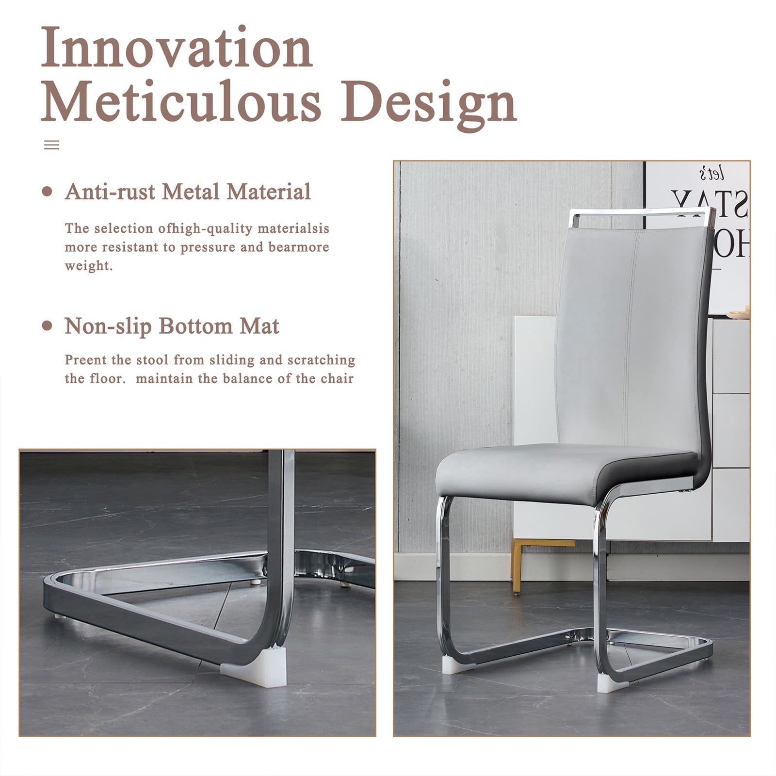 Modern Dining Table Set for 4,Sudica Rectangular Marble Kitchen Table Set with 4 PU Leather Upholstered Dining Room Chairs, Light Gray