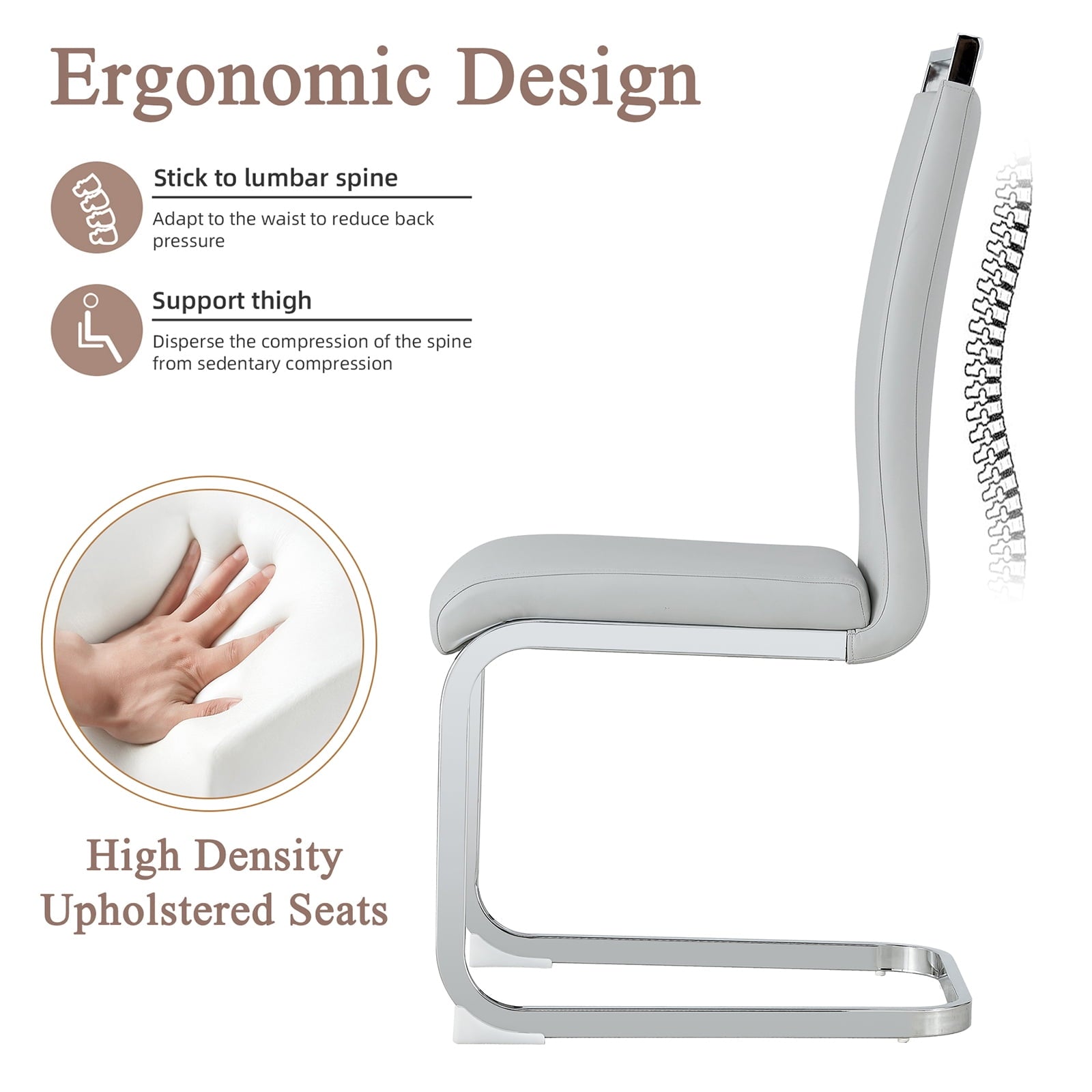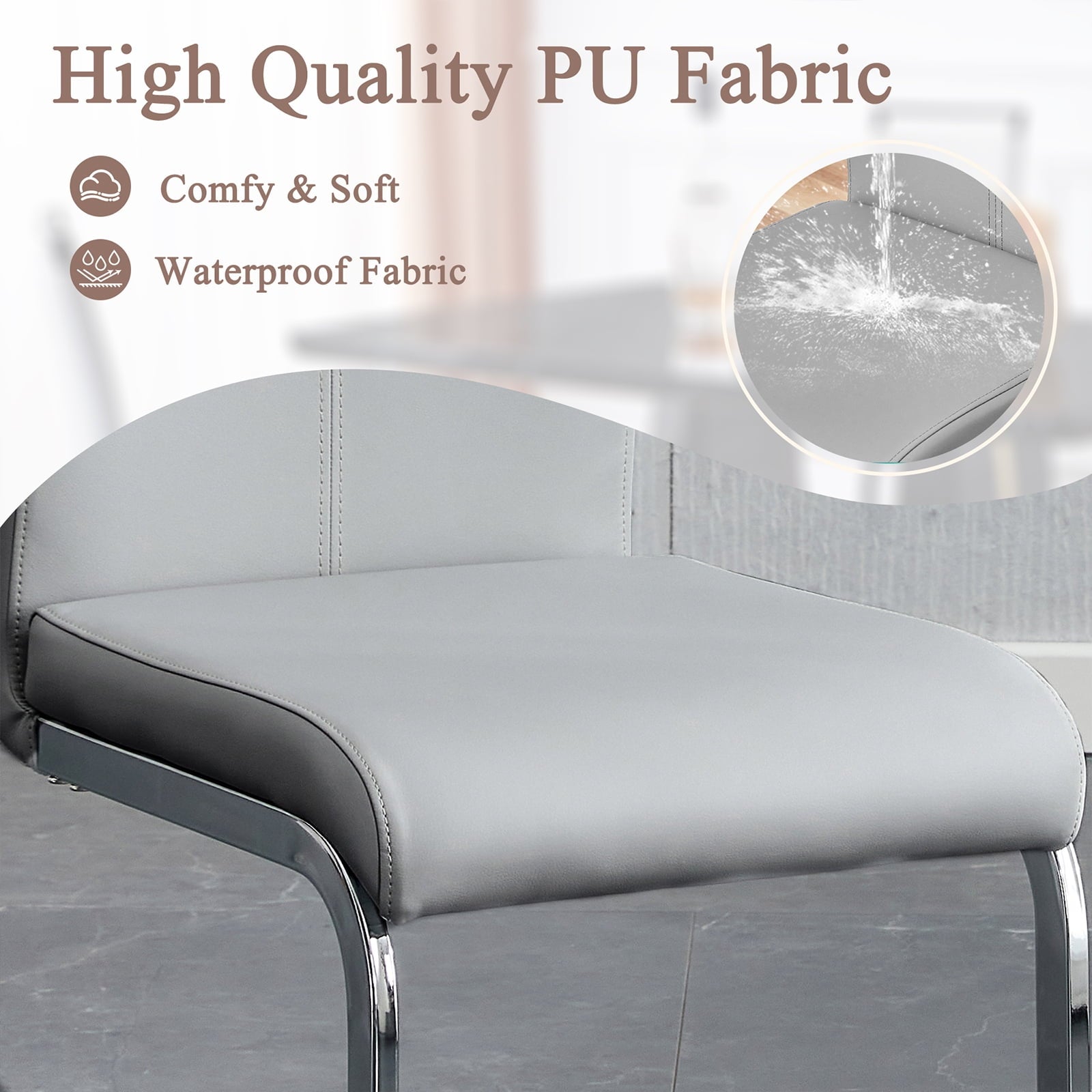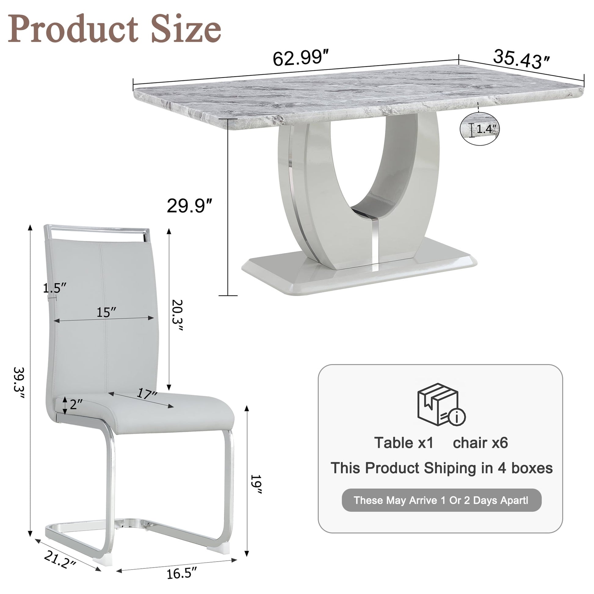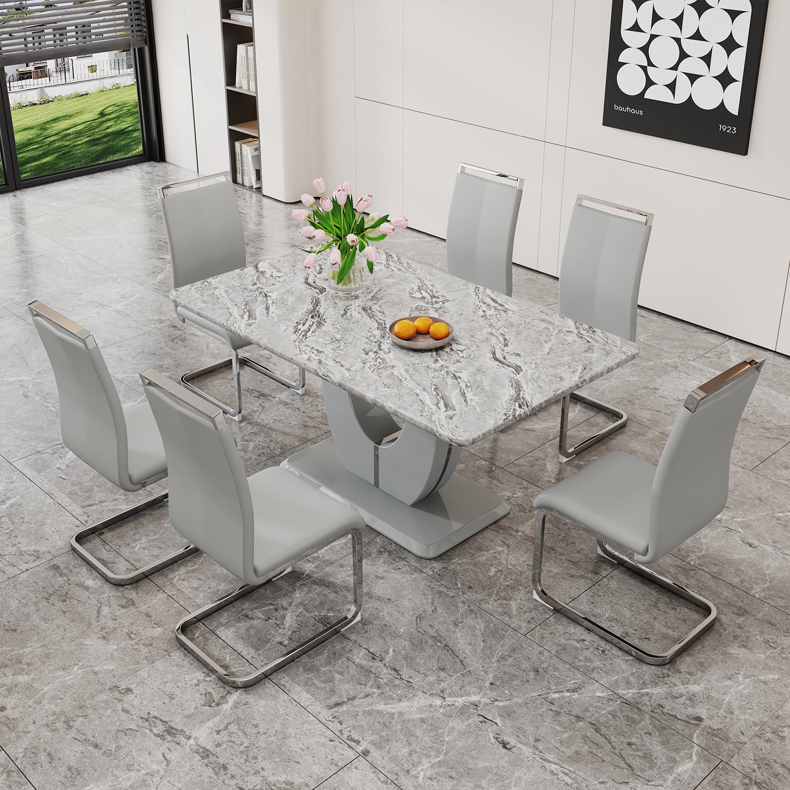 Modern Dining Table Set for 6,Sudica Rectangular Marble Kitchen Table Set with 6 PU Leather Upholstered Dining Room Chairs, Light Gray