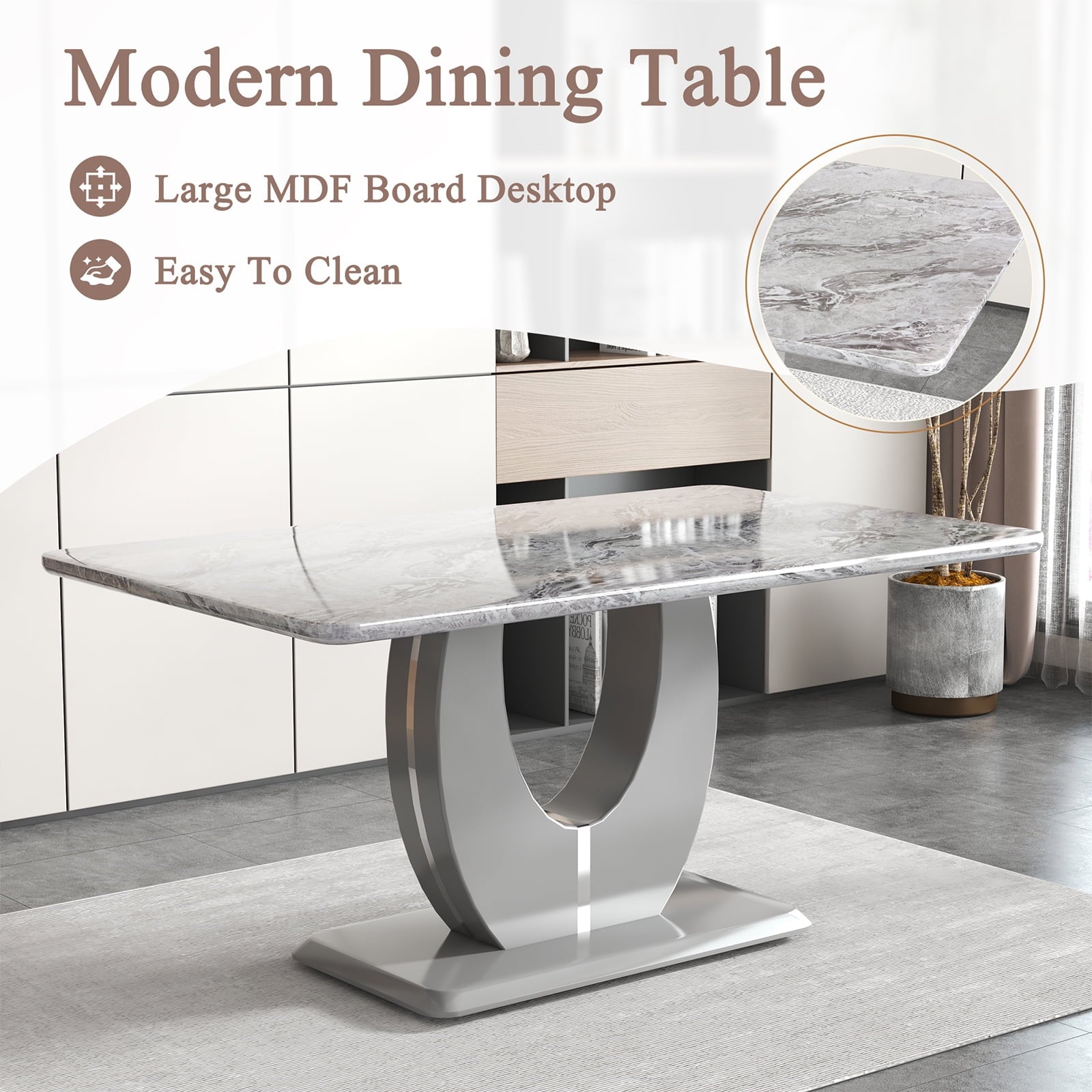 - ¡¾Modern Dining Room Table Set¡¿Create cherished memories with your family around our modern dining table set. Designed to bring joy and togetherness, this set allows you to enjoy entertaining moments all together. The simplistic faux marble design adds a touch of elegance to your kitchen and dining room, creating a modern and stylish ambiance. Perfect for seating four to six people, this set is the ideal choice for family discussions and gatherings.