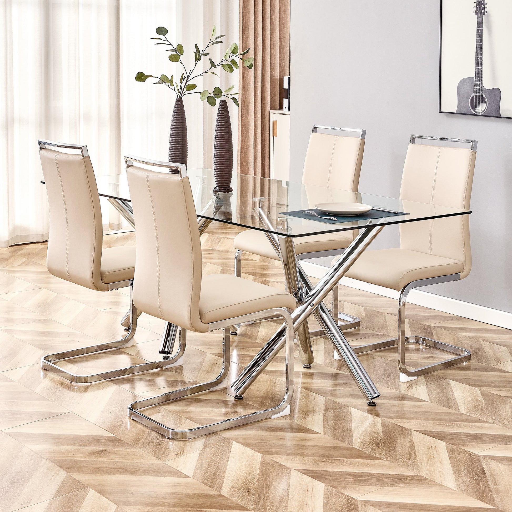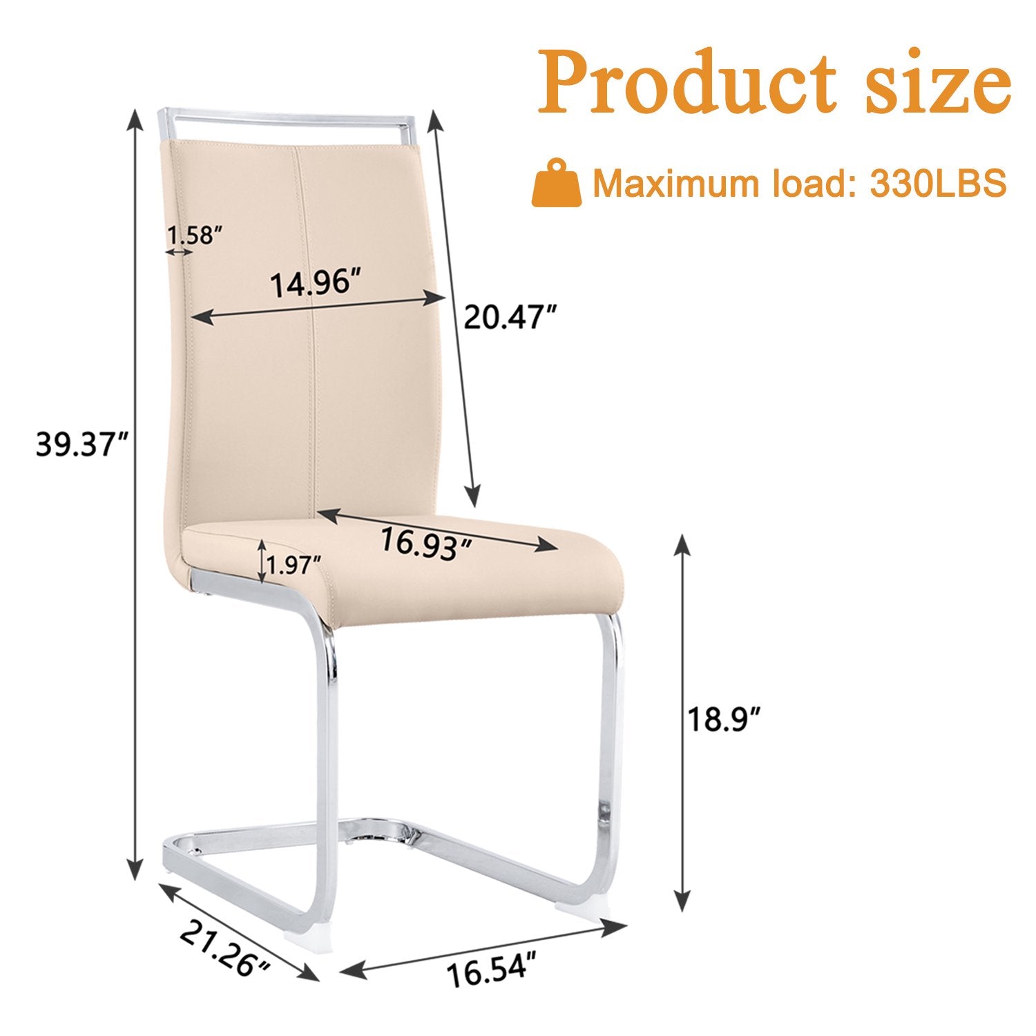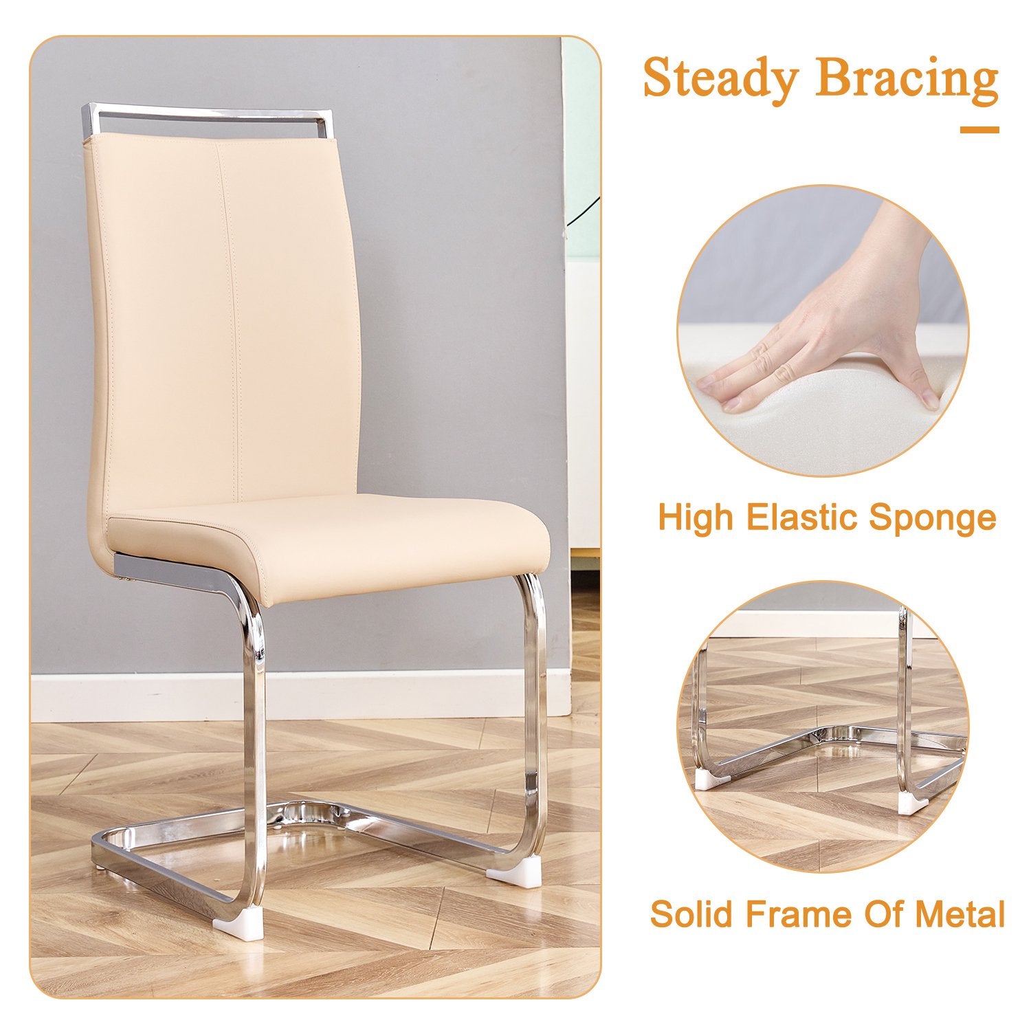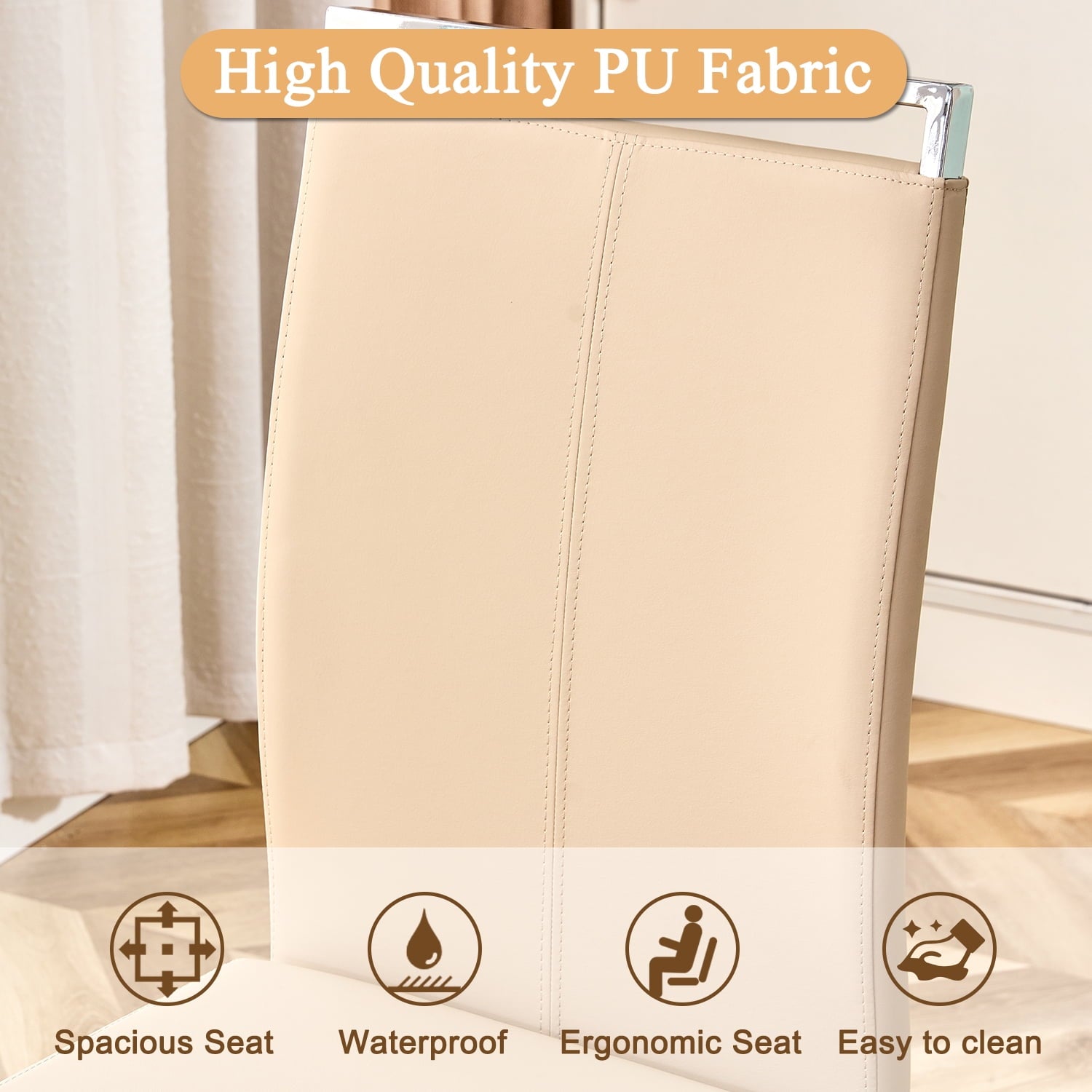 Modern Kitchen Dining Chair Set of 4 Upholstered PU Leather Dining Room Chairs with Metal Legs for Home, Beige