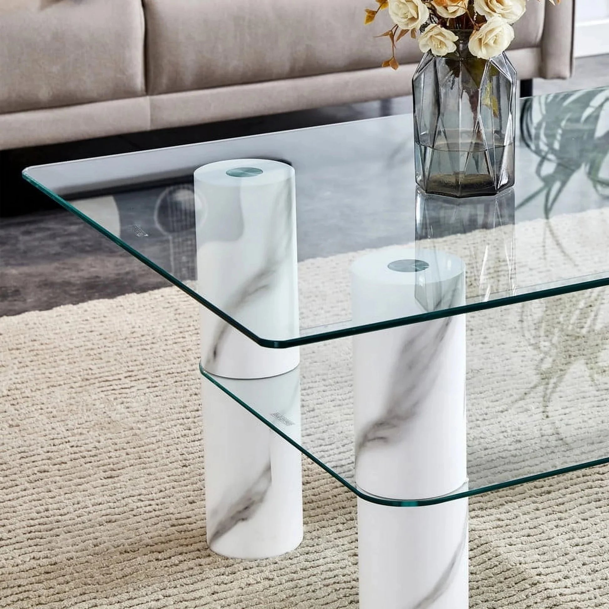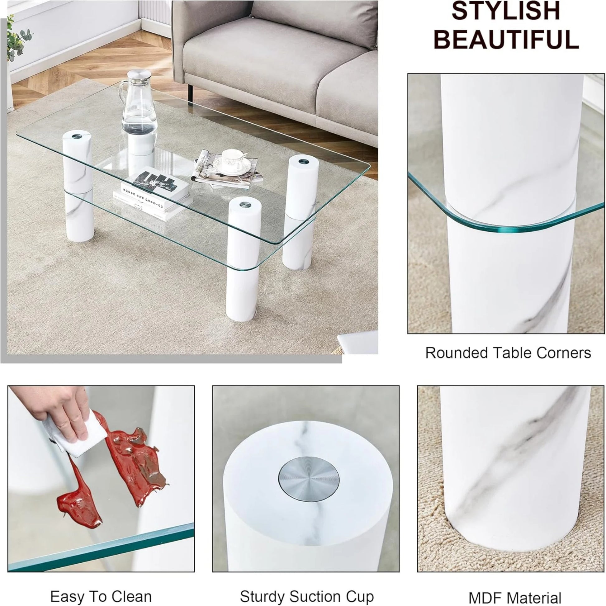 Modern minimalist double-layer transparent tempered glass and MDF decorative columns. Tea table for living room and bedroom.Assembly is a breeze, thanks to the included instructions and tools, with most people completing it in just 10-15 minutes.