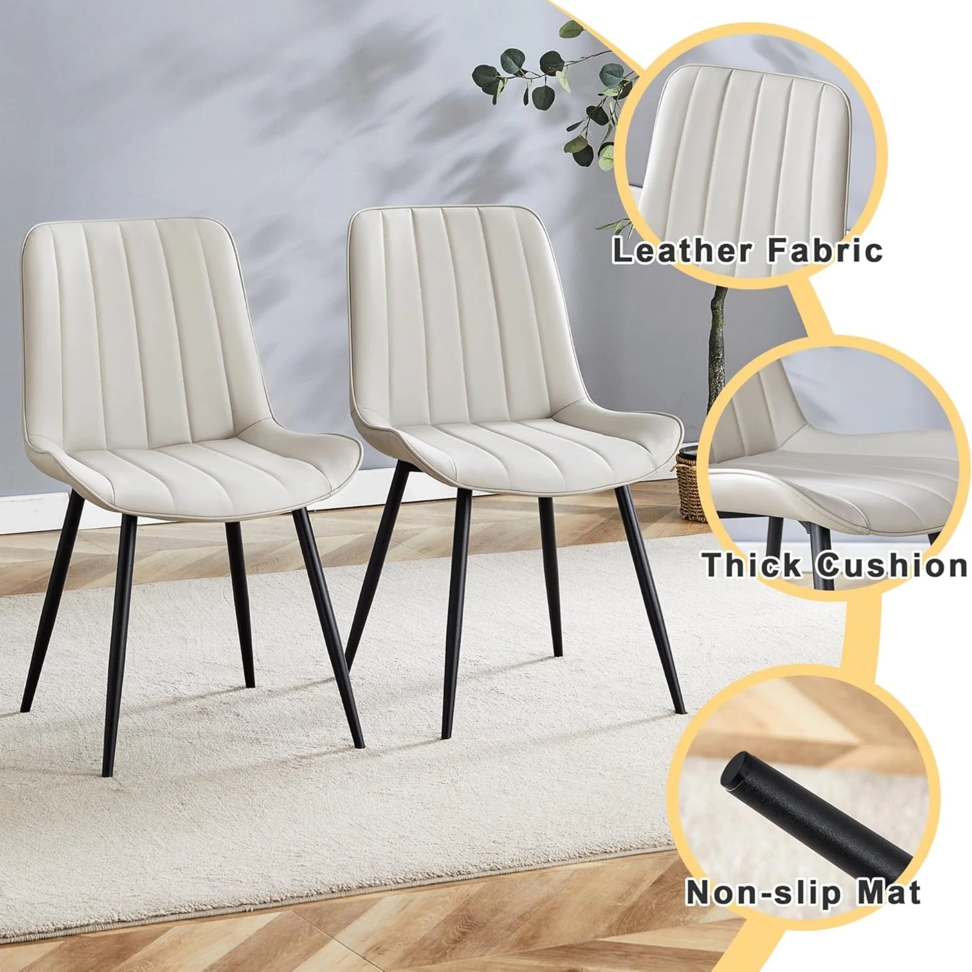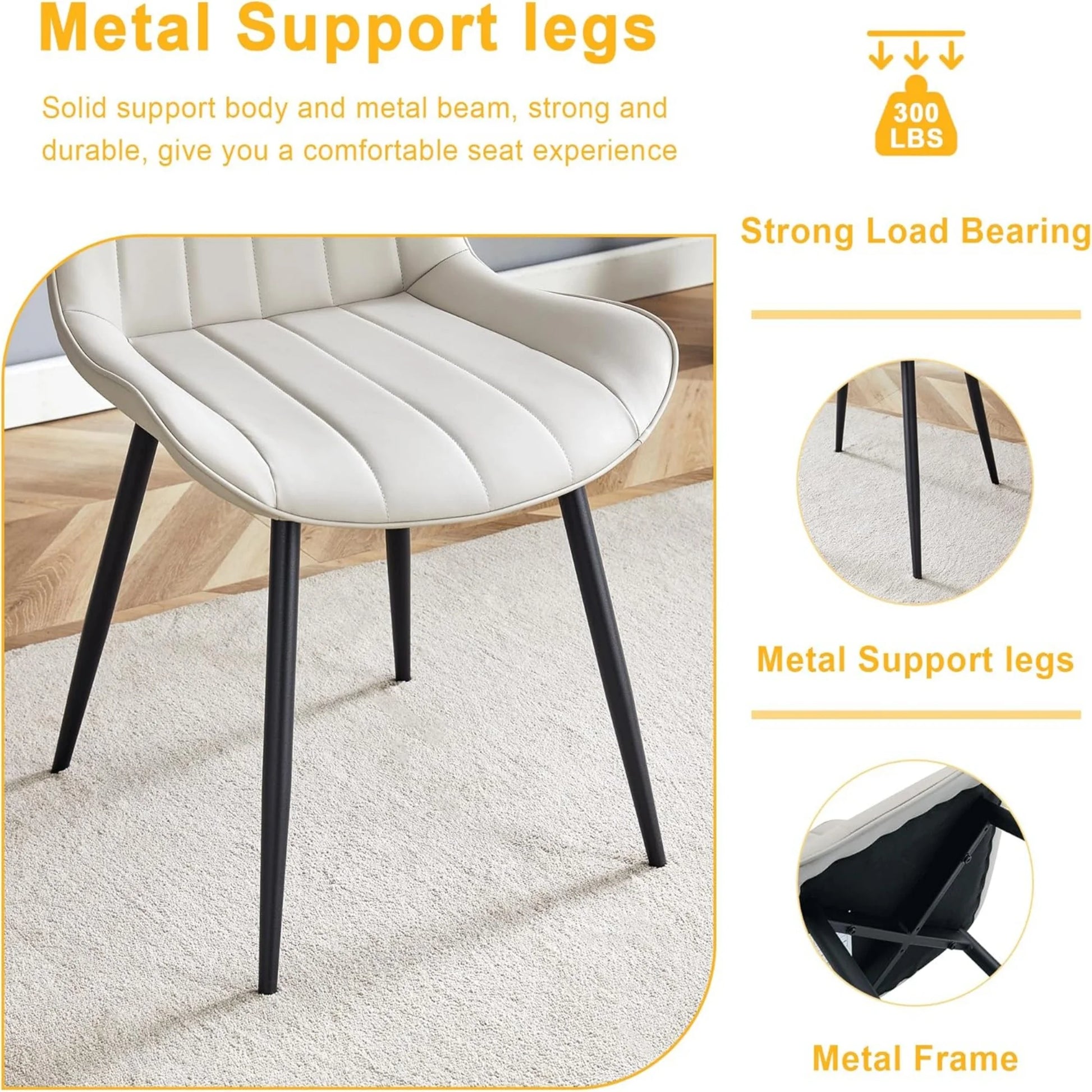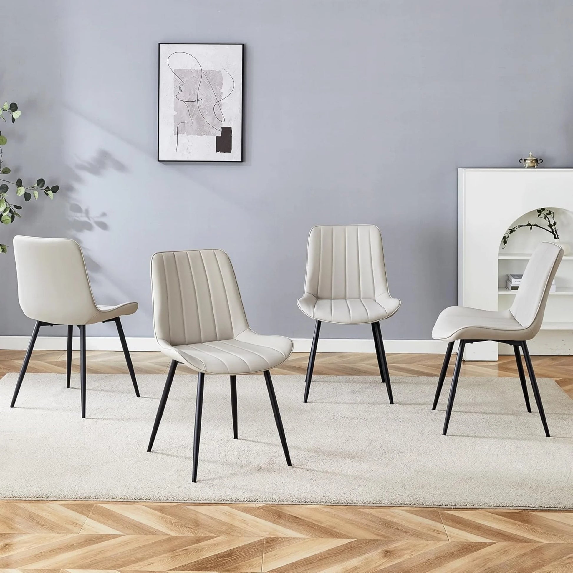 PU Leather Dining Chairs Set of 4, Modern Dining Kitchen Chairs with Cushion Seat Back Metal Legs, Upholstered Chairs for Home Kitchen Restaurant Dining Living Room (Beige)