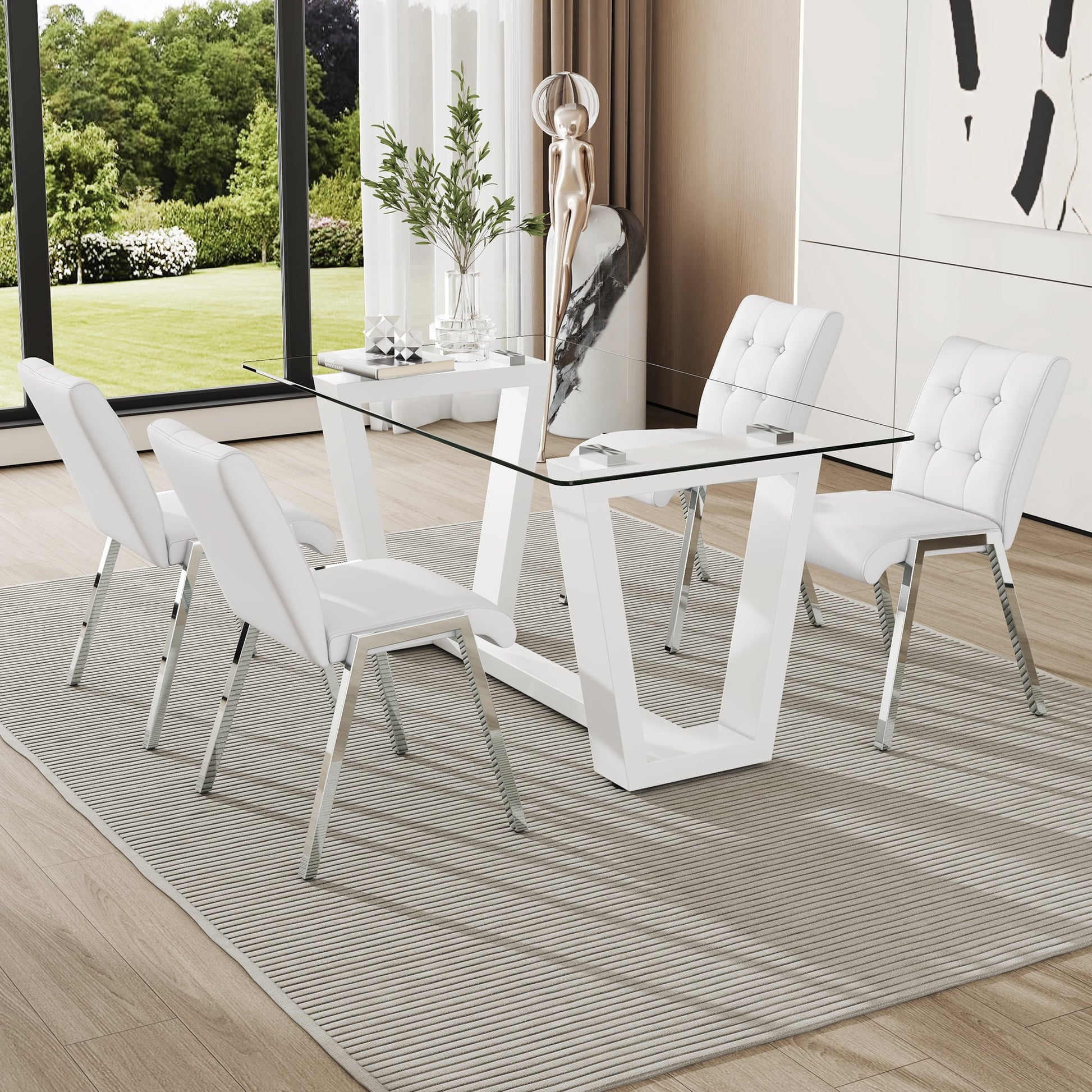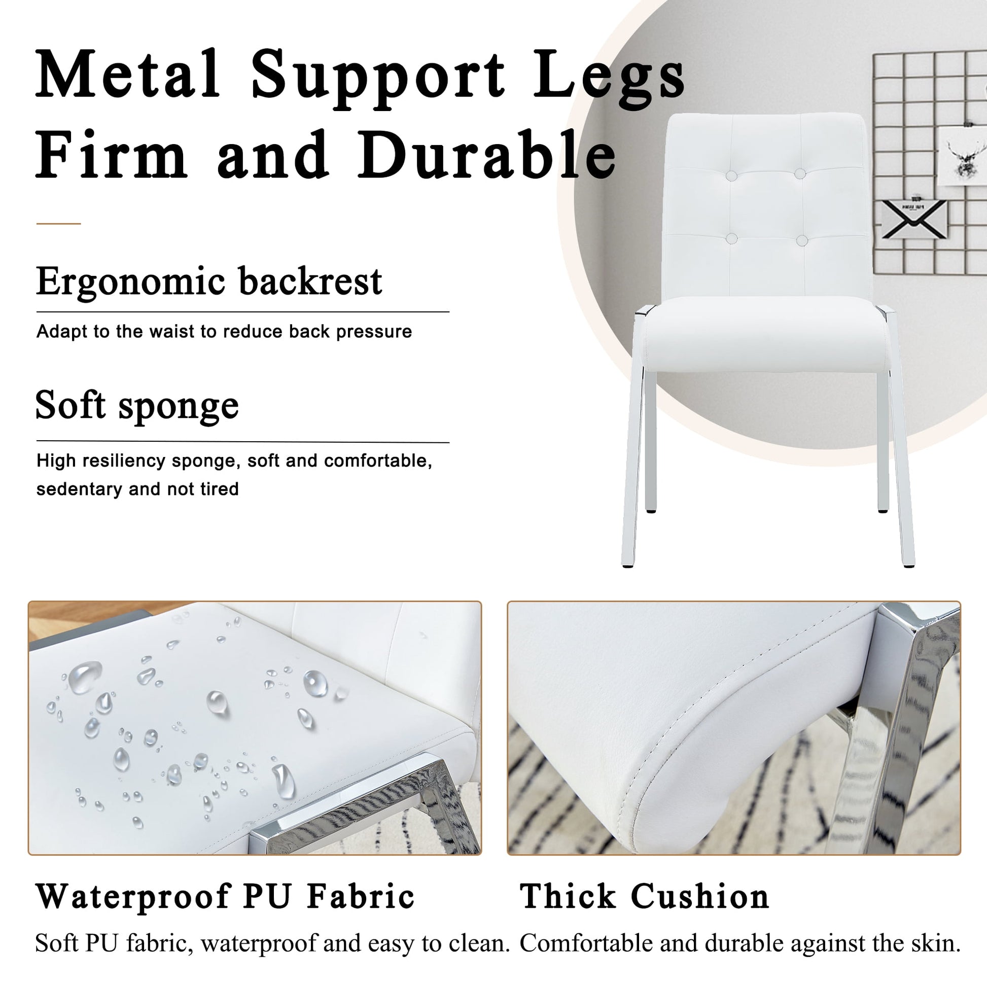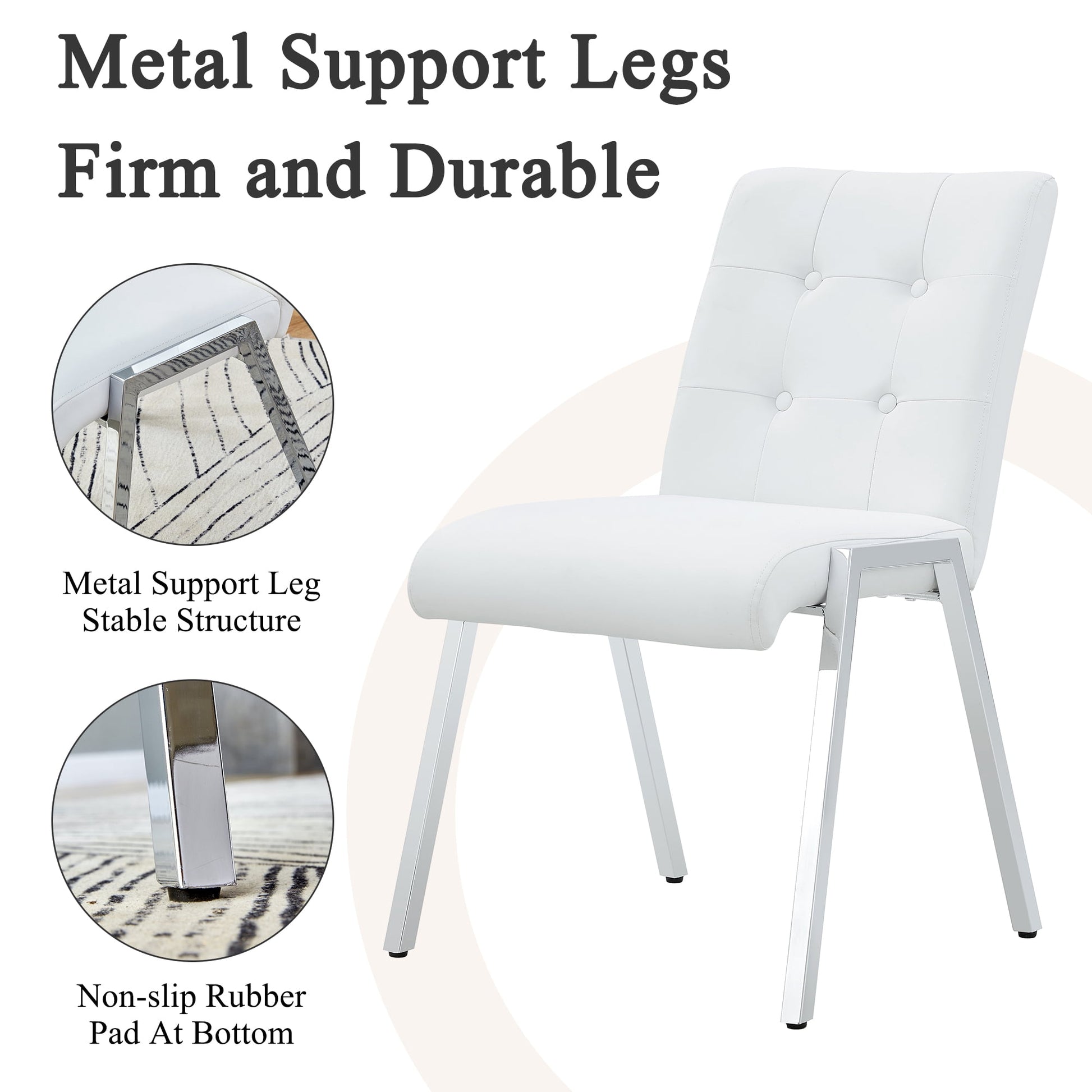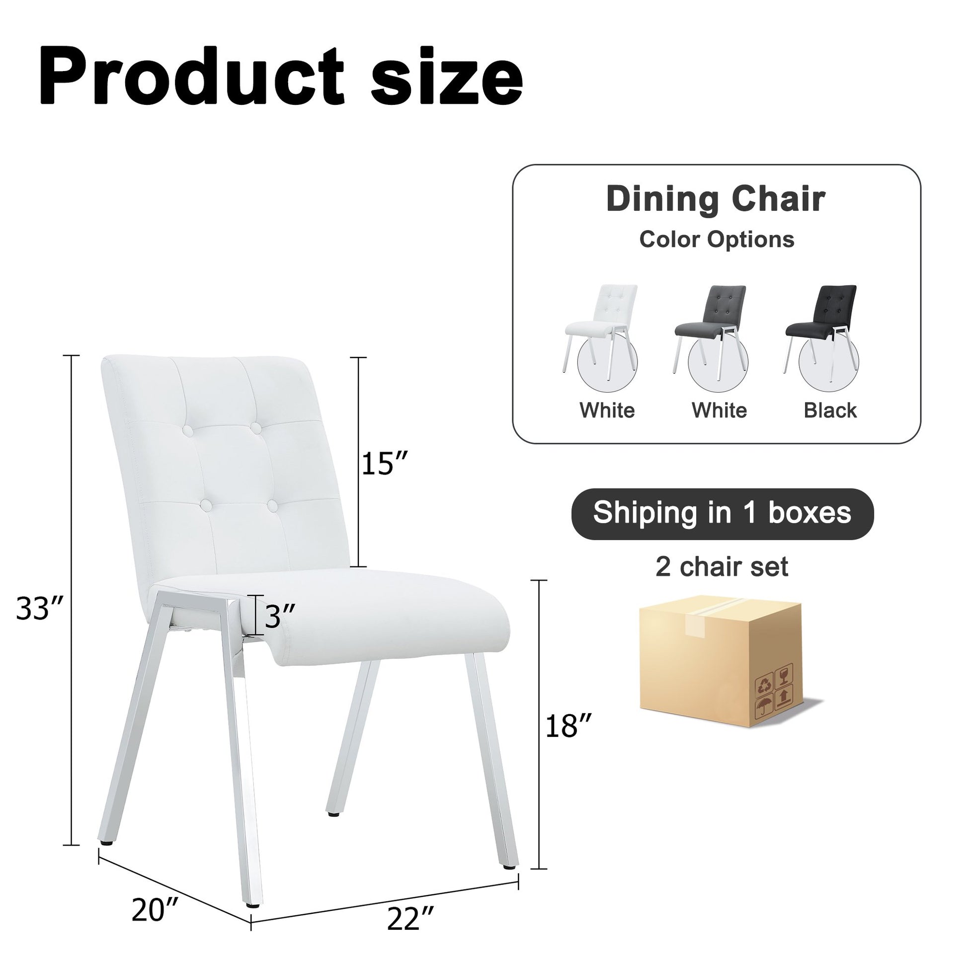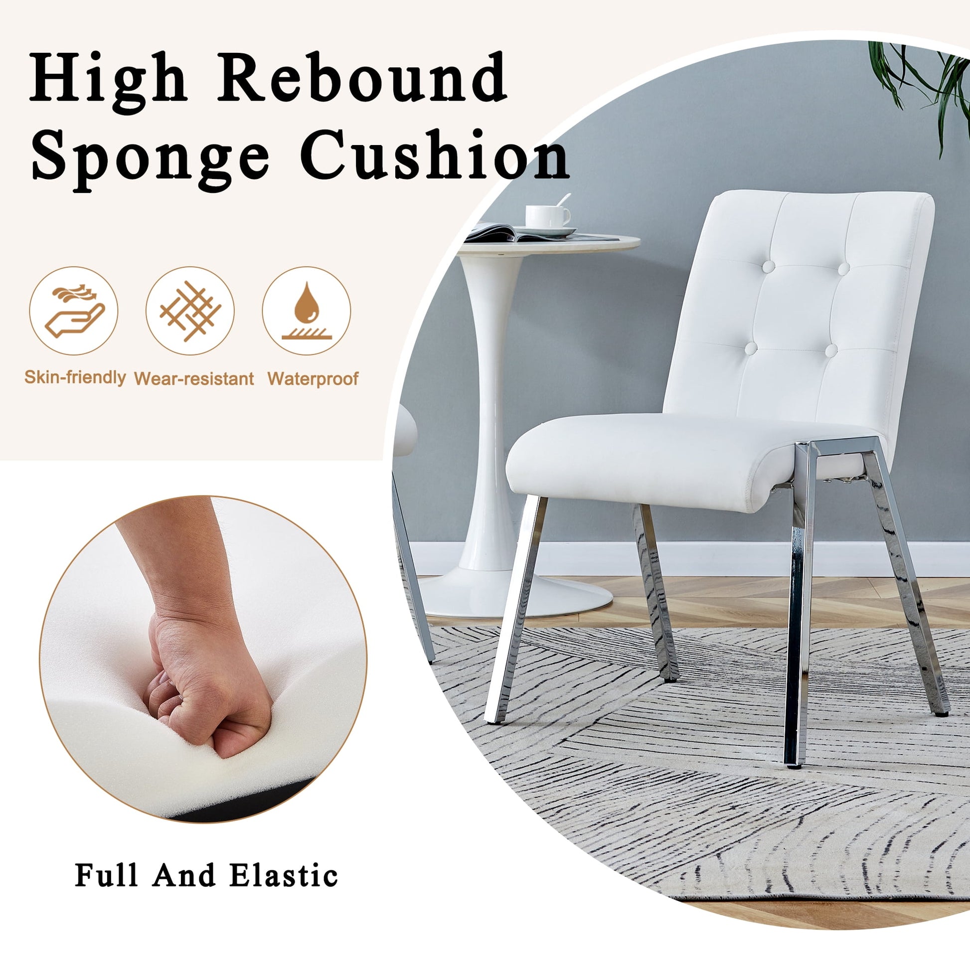 Crafted with care, these dining chairs feature seats made of breathable faux leather that is both cozy and classy. The sleek silver chromo legs add a modern flair to the overall design. The kitchen chairs are adorned with a sophisticated tufted pattern, exuding elegance and refinement. The tall and thick foam backrest offers superior support for your back, ensuring maximum comfort. The upholstered cushion guarantees a soft and comfortable seating experience. Finished in timeless design, these dining room chairs effortlessly blend with various decorating styles, making them a perfect fit for any living room, kitchen, or dining area.