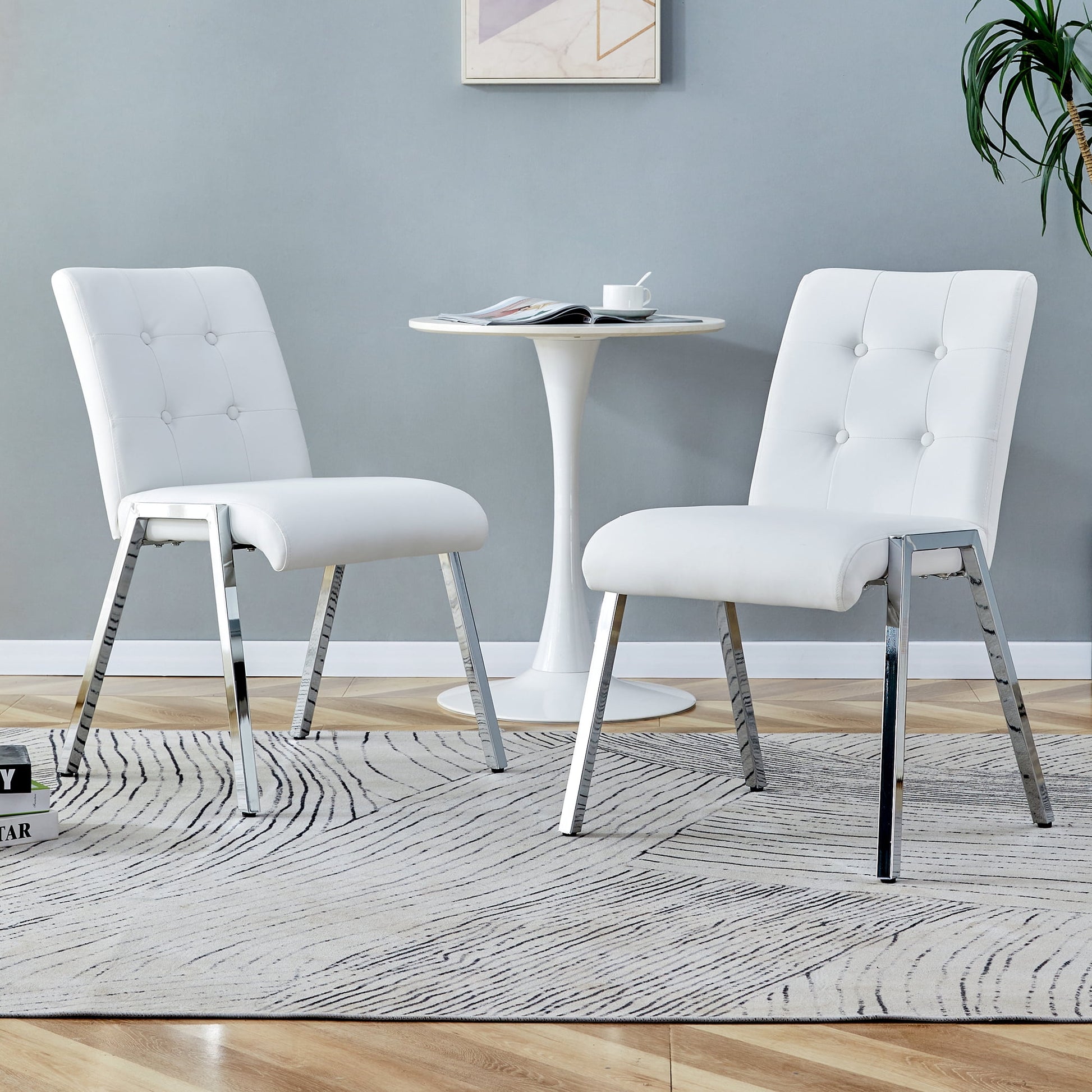 Sudica Set of 2 Dining Room Chairs Upholstered Tufted Mid-Century Modern Kitchen Chairs with Chomon Legs, White(chairs only)