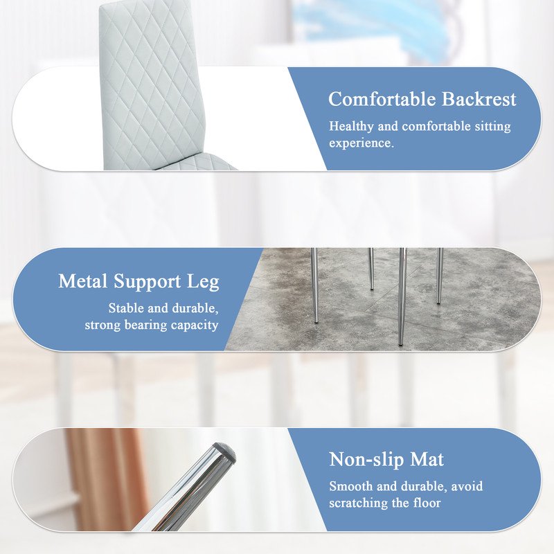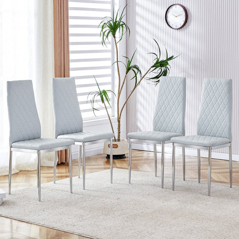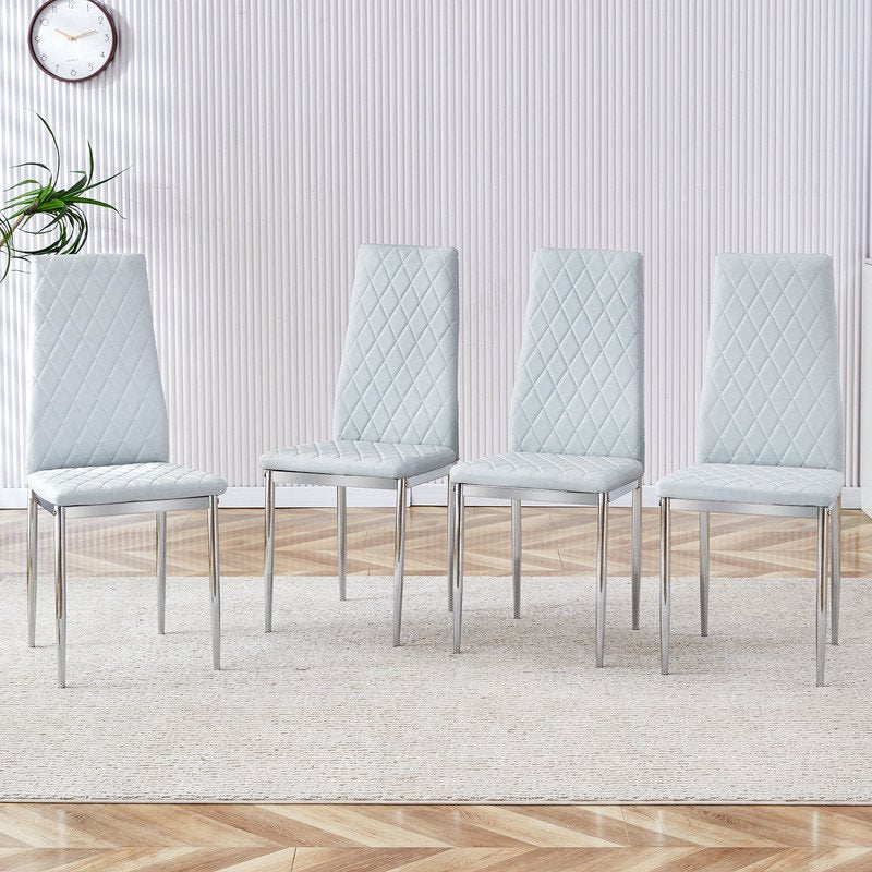 Sudica Upholstered Dining Chairs Set of 4 PU Leather Kitchen Dining Room Chairs with Tall Slat Back, Gray
