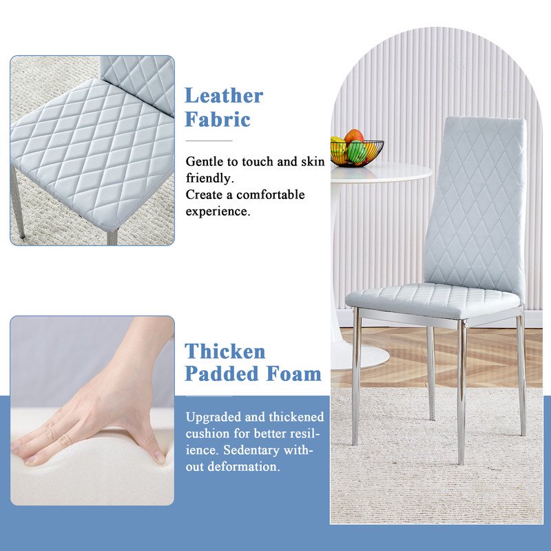 Boasting a tall backrest, a leather seat, foam cushioning, and a clean line design, our dining chair is the epitome of elegance and comfort. Ideal for a wide range of occasions such as weddings, meetings, and dinner time, this leather dining chair offers both style and functionality. With foam cushioning, the kitchen chair provides a plush and comfortable seating experience. The clean line design adds a modern and sophisticated touch to any space, making our dining chairs the perfect addition to elevate any event or gathering. NOTE: ONLY CHAIRS!!! DINING TABLE IS NOT INCLUDED!