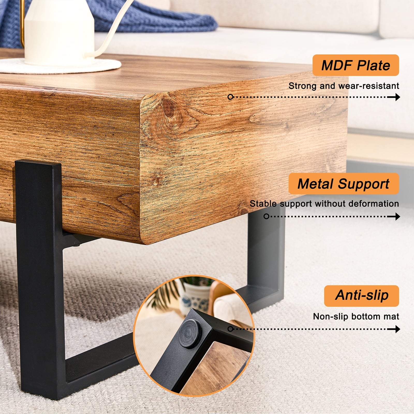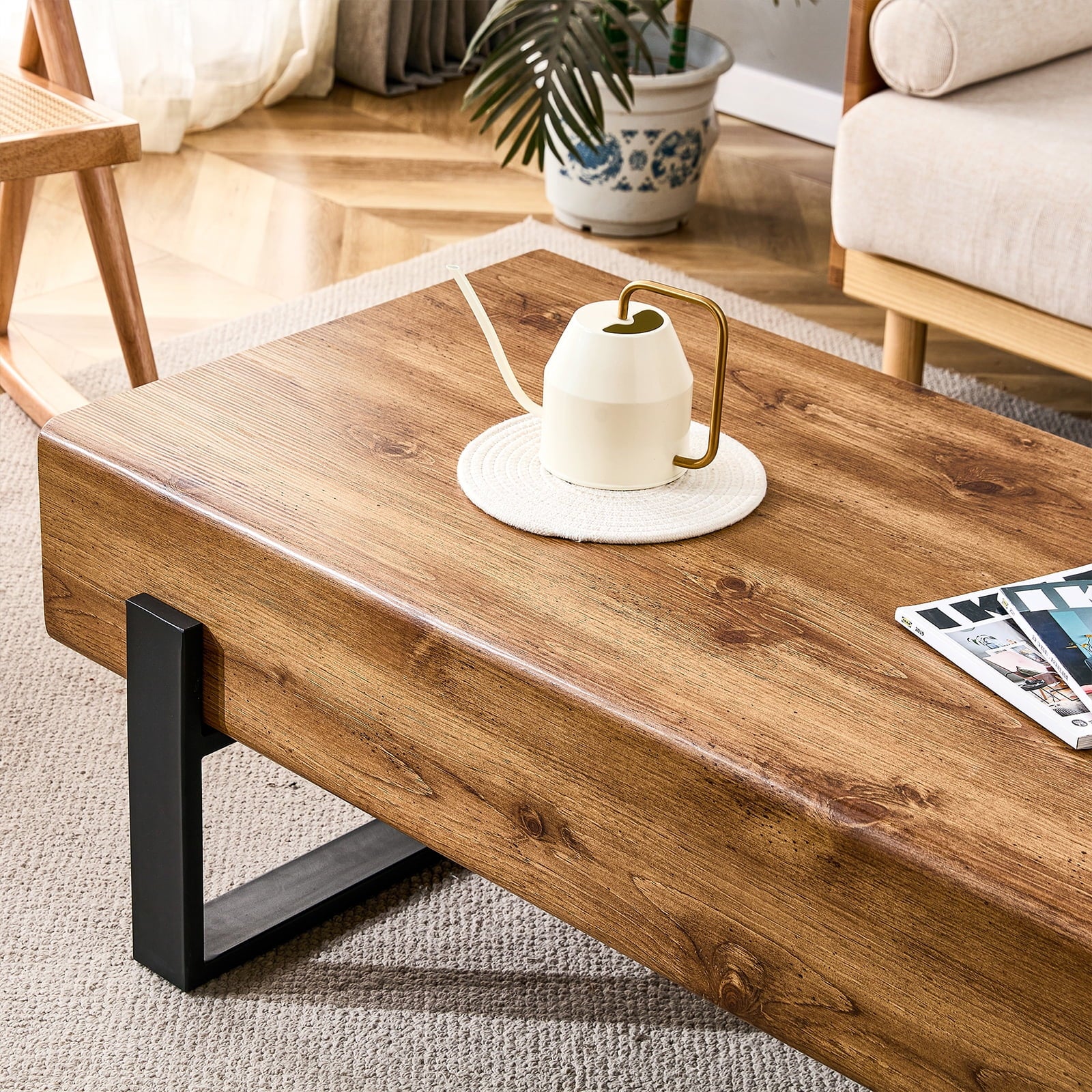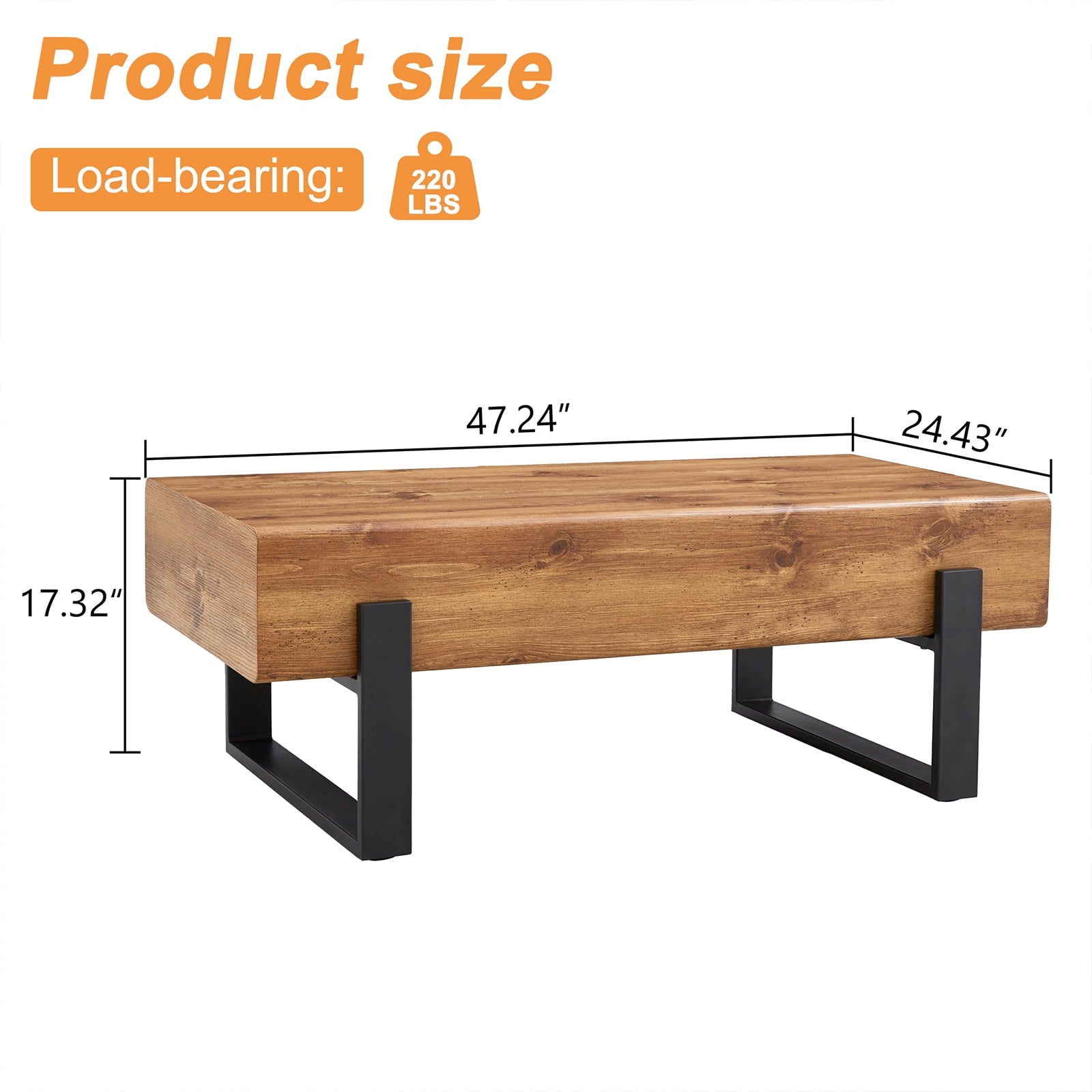 - ¡¾Sturdy & Durable¡¿: Crafted with a 8 inch thick table top and thick metal tube, this rustic cocktail table ensures exceptional sturdiness and durability. With a weight capacity surpassing 220 lbs, this coffee table is built to withstand heavy use and provide a reliable surface for your belongings.
