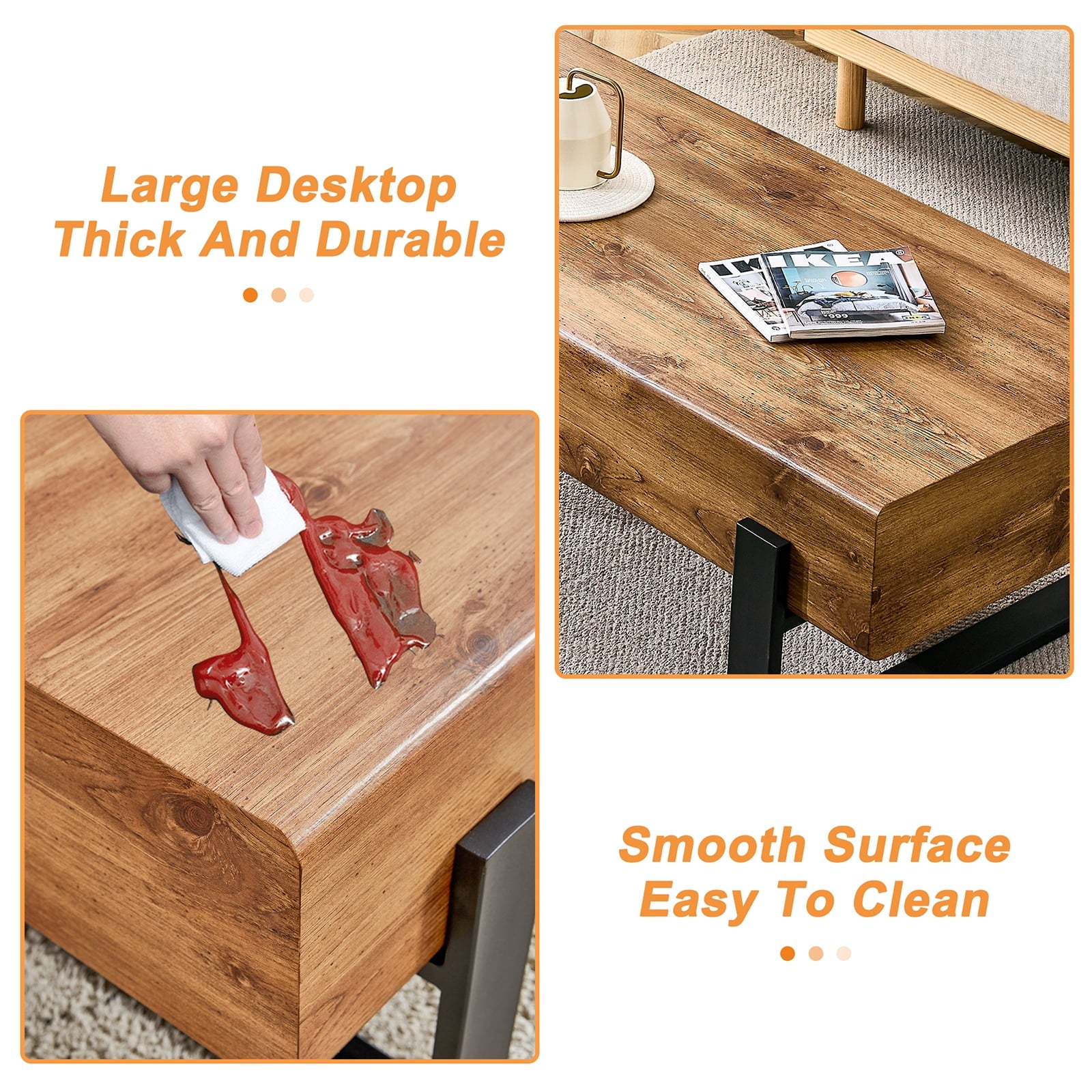 - ¡¾Rustic Coffee Table¡¿: Experience the perfect blend of clean design and rustic industrial style with this captivating coffee table. Thoughtfully distressed to achieve a reclaimed look, this table is expertly crafted using MDF with a stunning wood grain texture. Contrasting the rustic charm, a sleek steel frame with clean lines and an elegant powder-coated matte black finish adds a touch of sophistication.