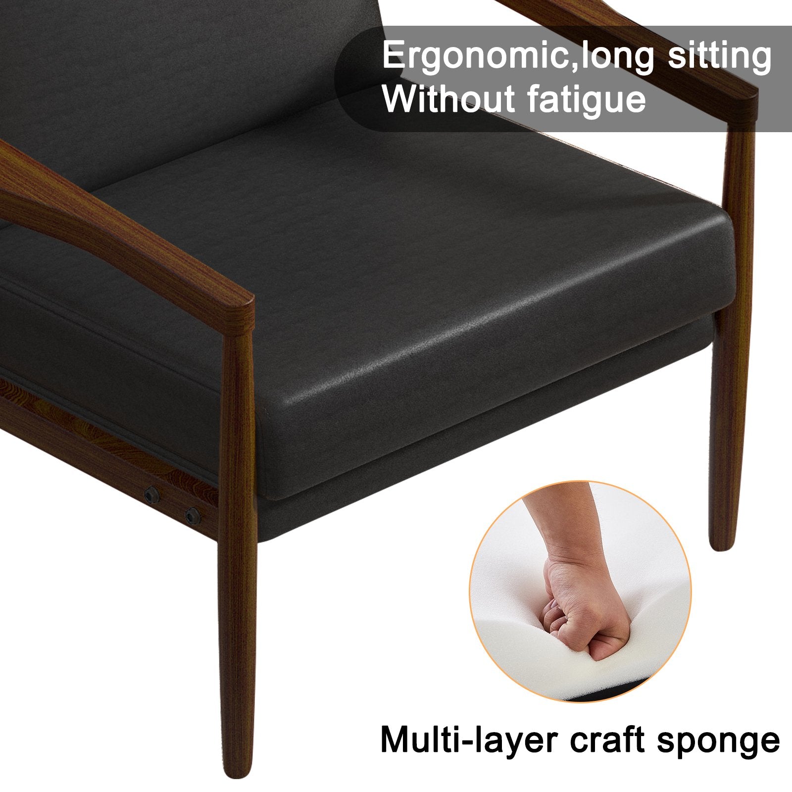 Sudica Wooden Accent Chair, Mid-Century Modern Padded Armchair with Wood Legs for Living Room,Black
