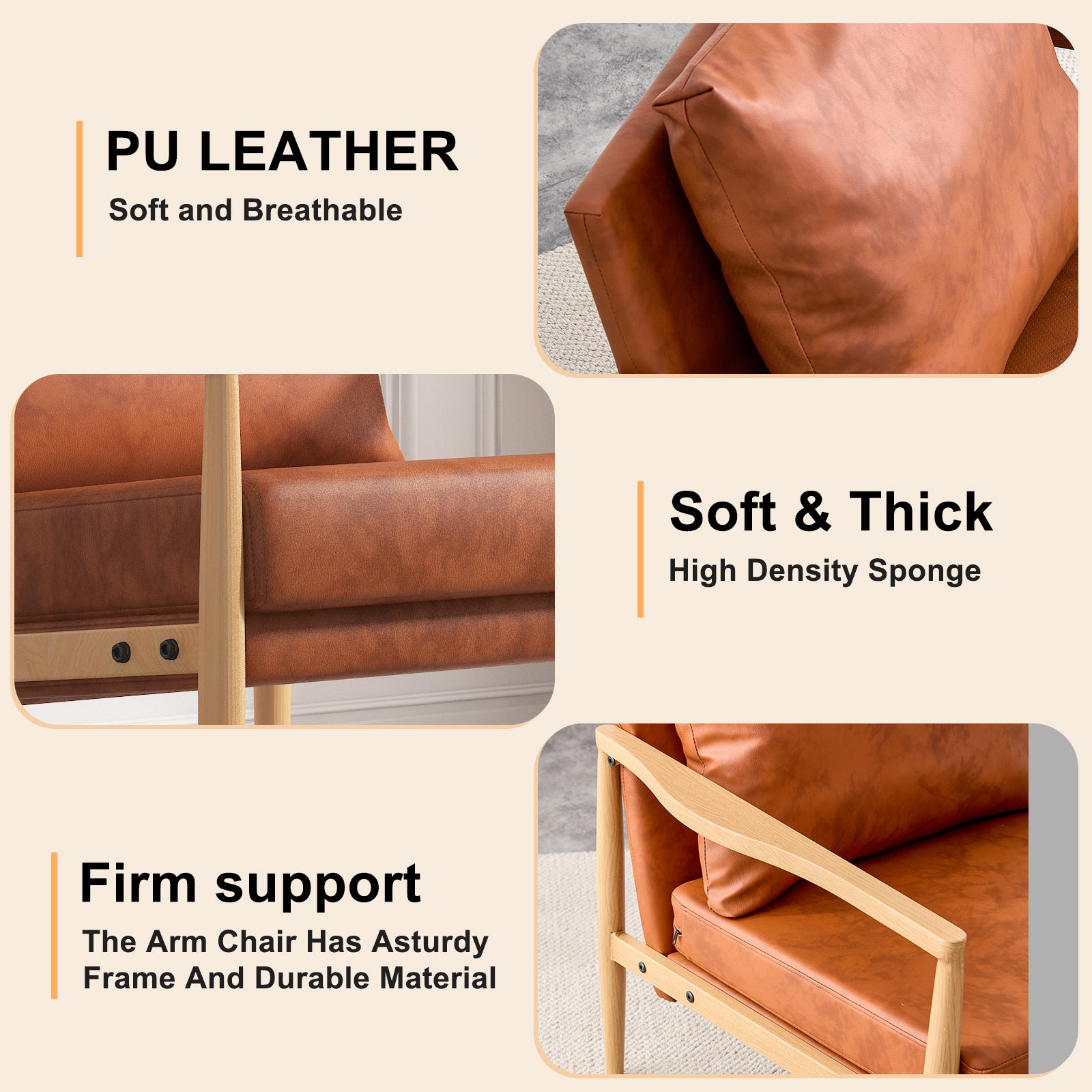 Our wood frame padded accent chair offers a luxurious and comfortable seating option, perfect for any space in your home. With its sleek wooden legs and cozy PU leather upholstery, it's a stylish addition to your decor that's built to last. Experience the perfect blend of luxury and comfort today!