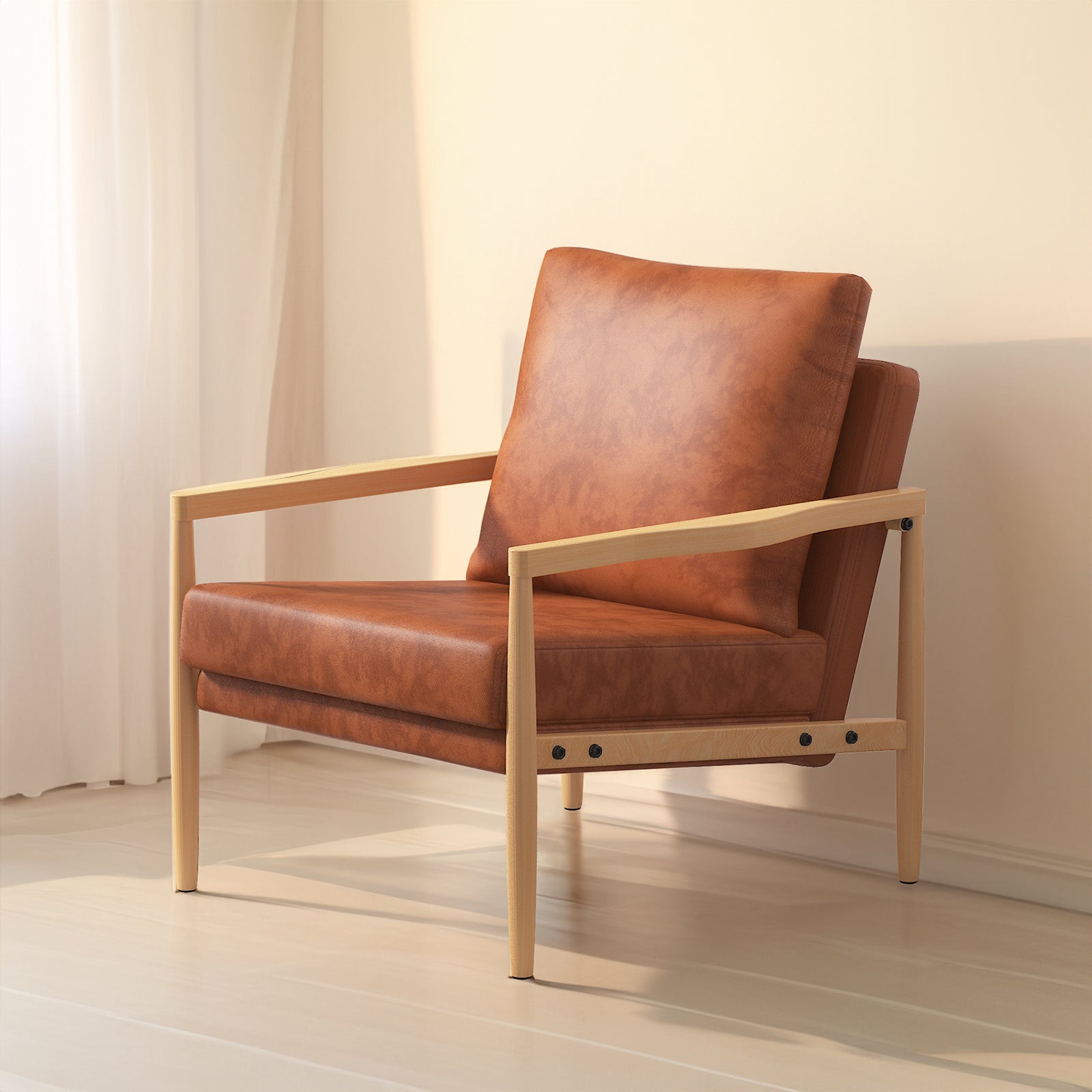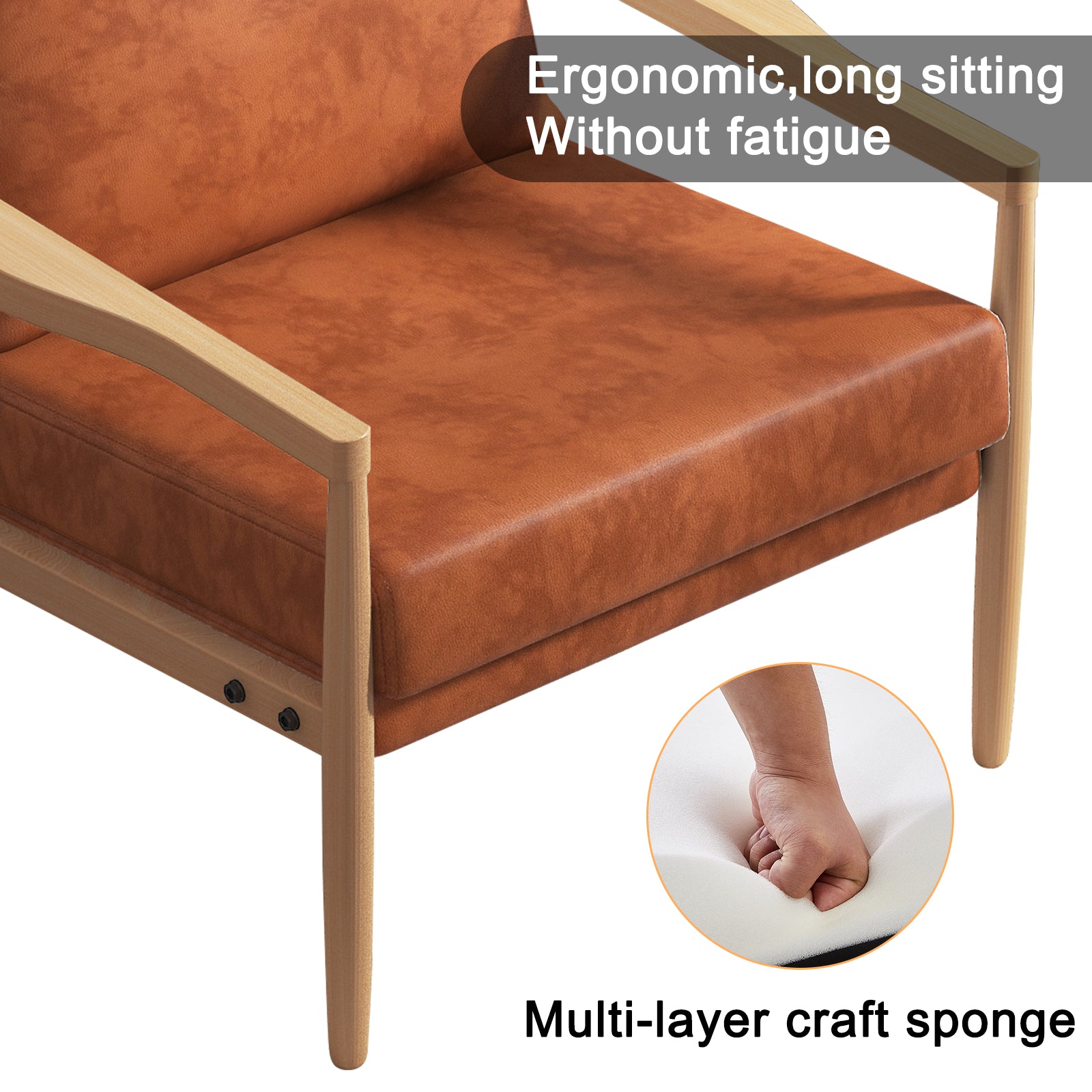 Sudica Wooden Accent Chair, Mid-Century Modern Padded Armchair with Wood Legs for Living Room, Brown