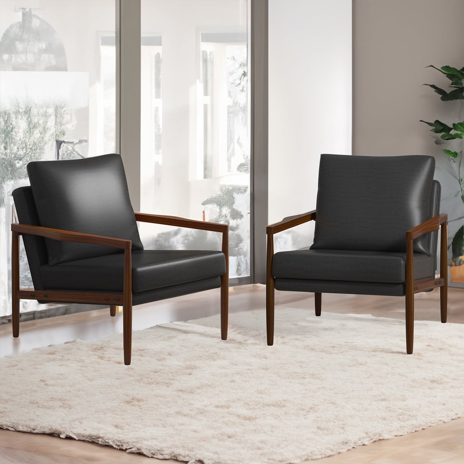 Sudica Wooden Accent Chair Set of 2, Mid-Century Modern Padded Armchair with Wood Legs Small Sofa for Living Room,Black
