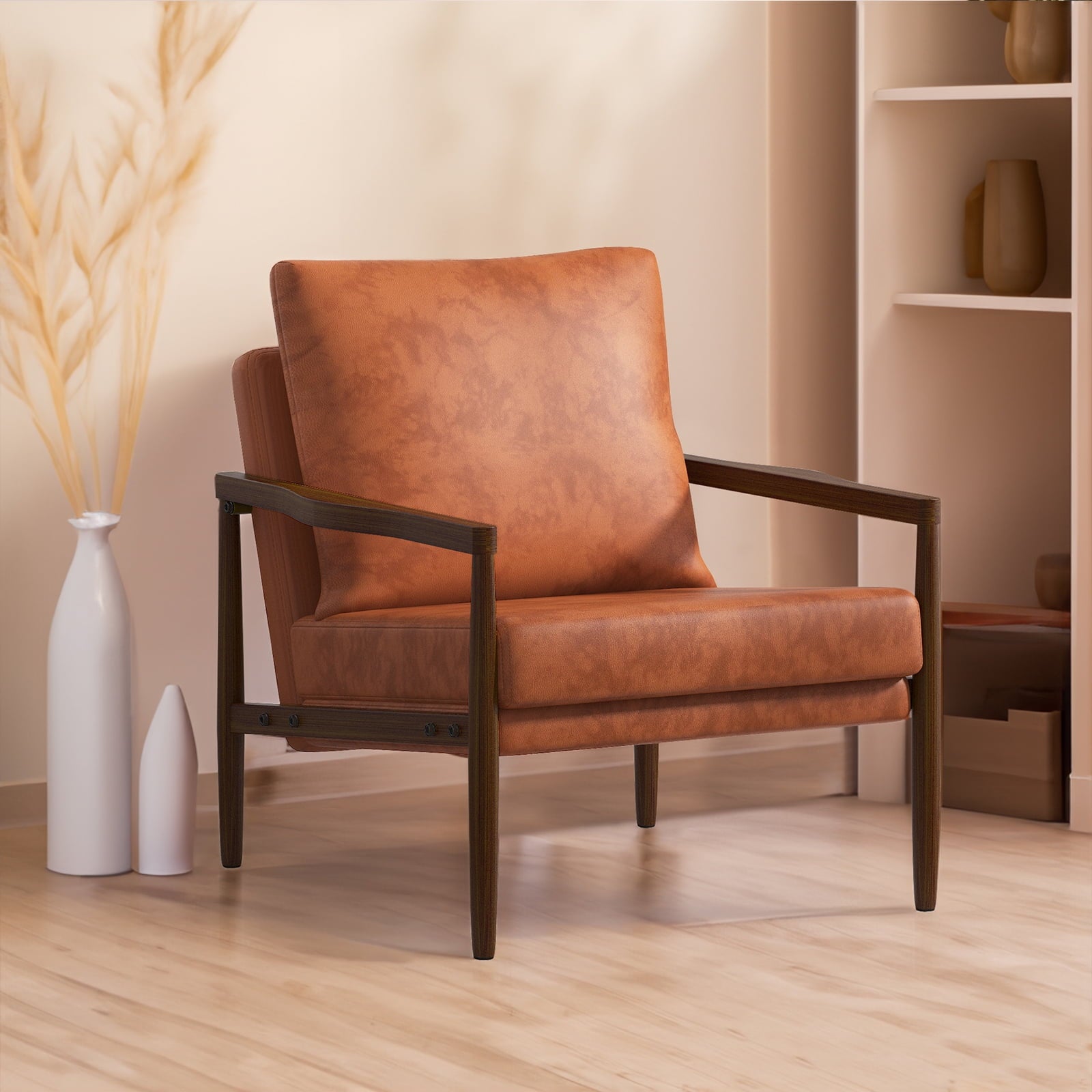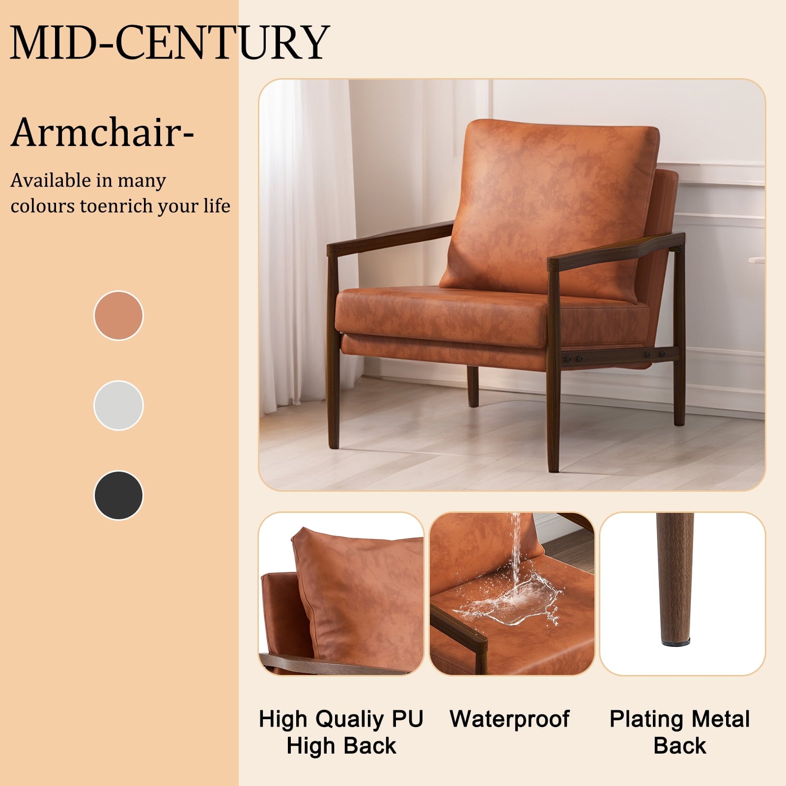 - ¡¾Cozy Accent Chair¡¿Our foam-padded accent chair is covered in durable and easy-to-clean PU leather fabric. Its stable wooden legs provide a sturdy foundation for comfortable sitting, while the slight slant of the backrest ensures maximum comfort.