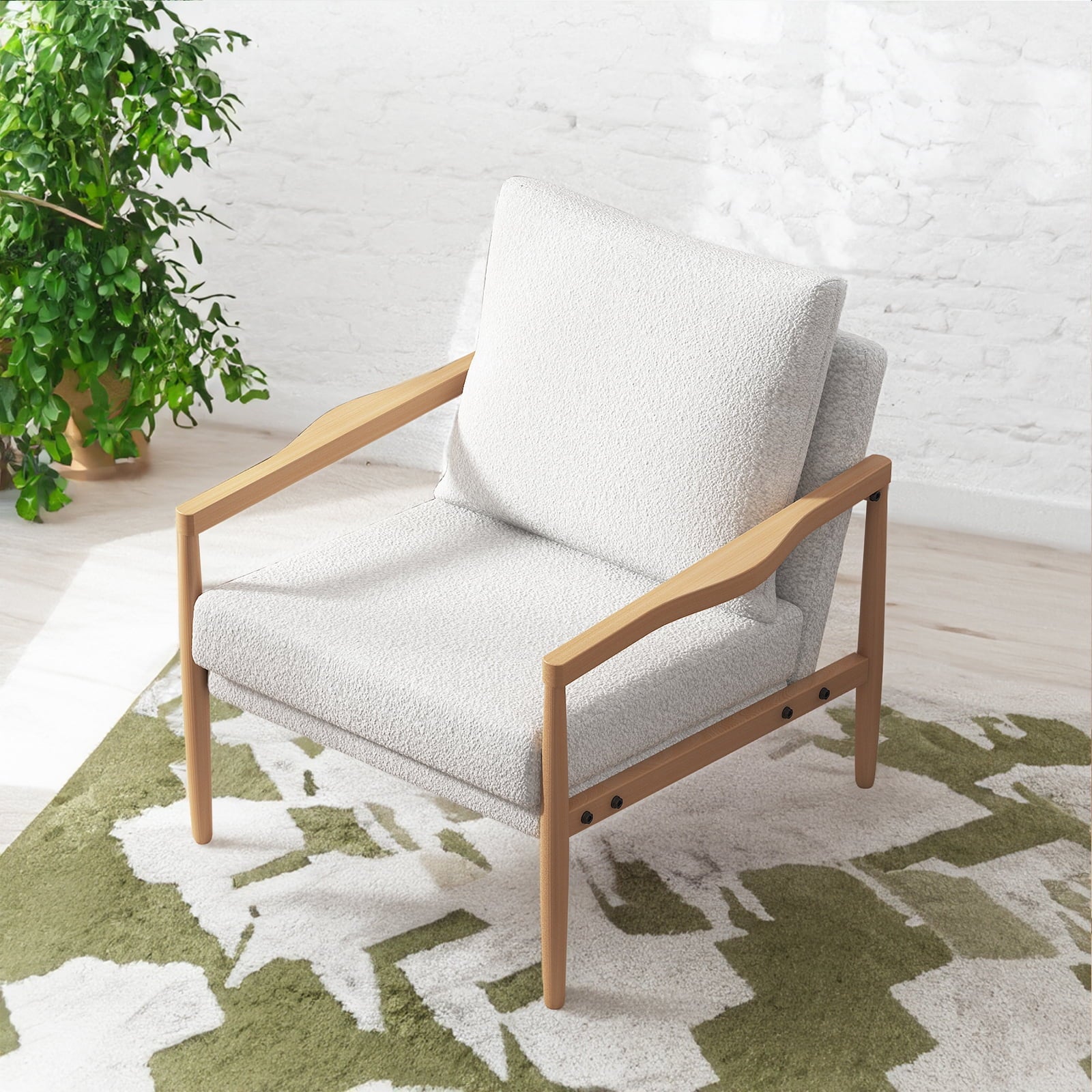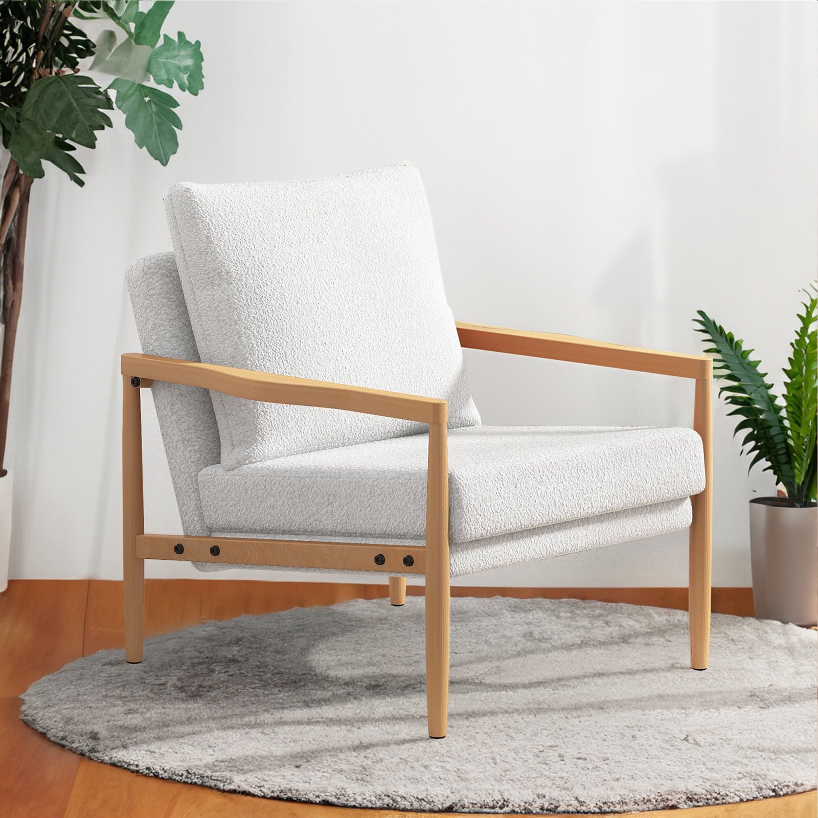 Sudica Wooden Accent Chair Set of 2, Mid-Century Modern Padded Armchair with Wood Legs Small Sofa for Living Room,White