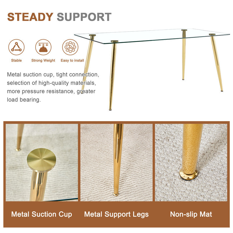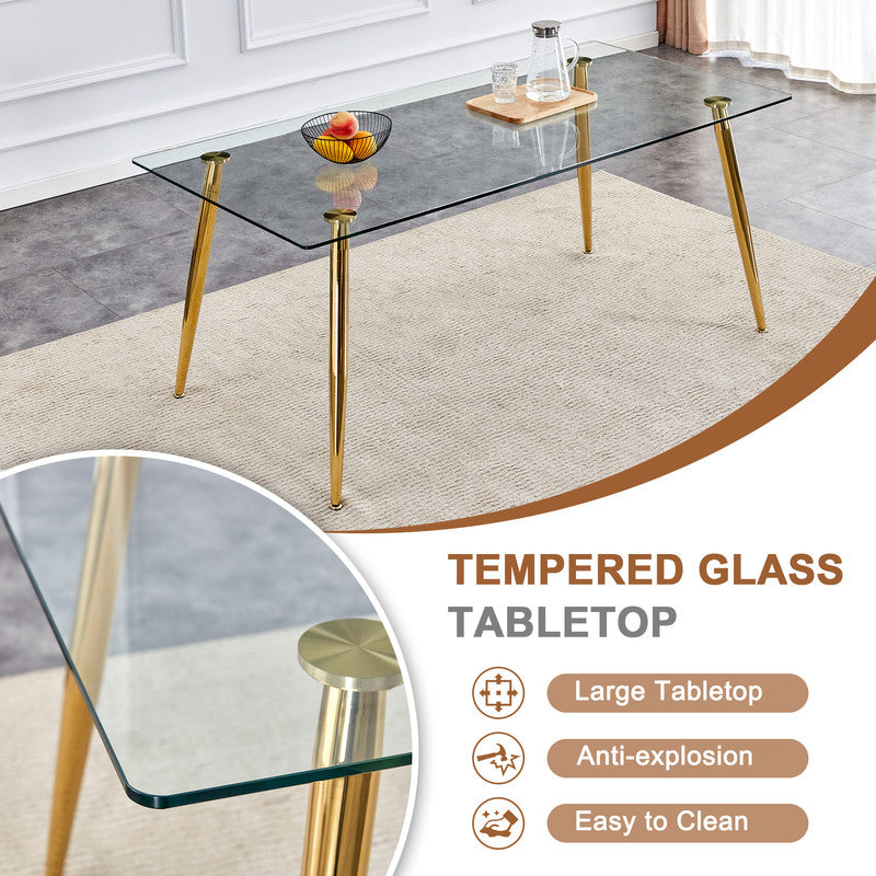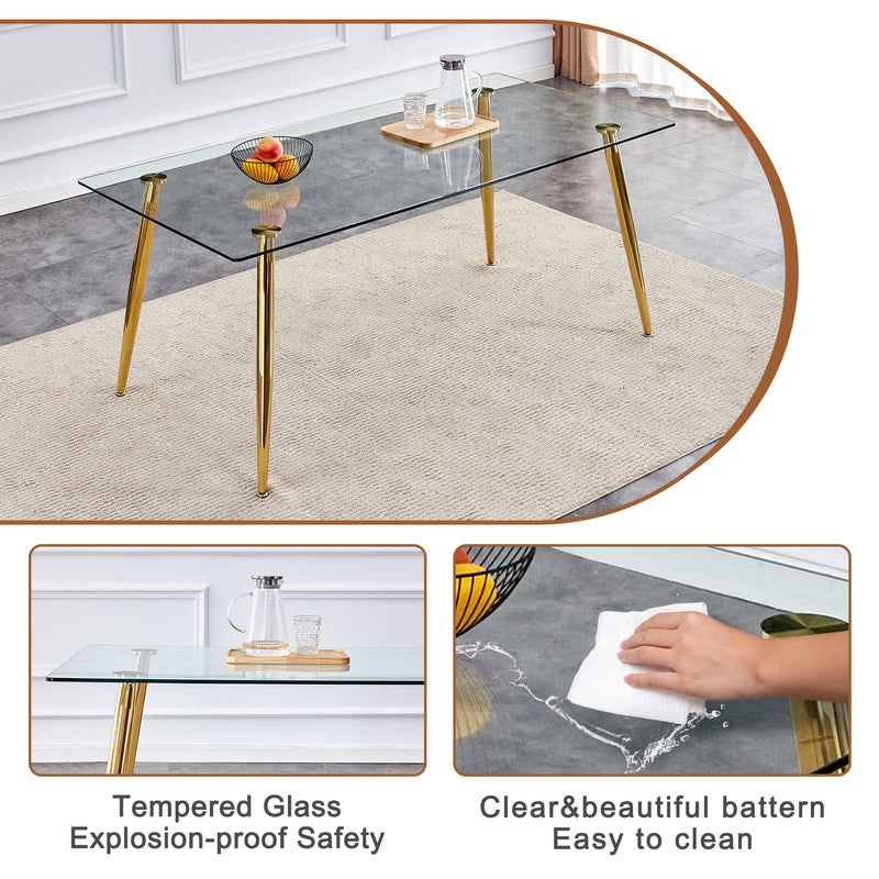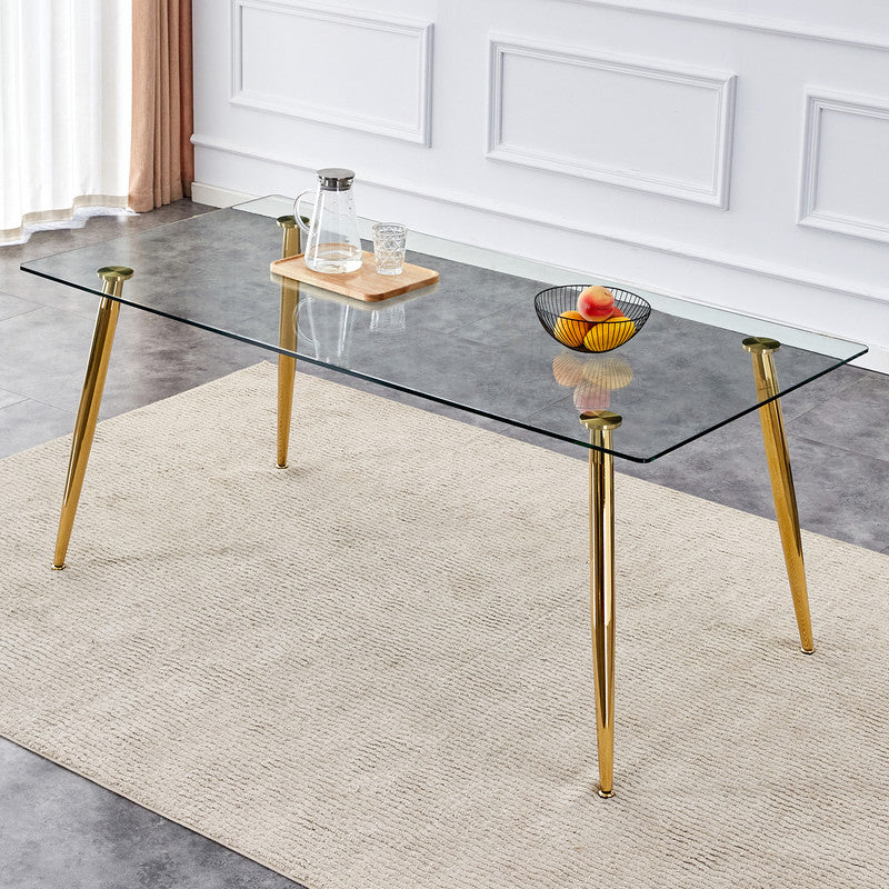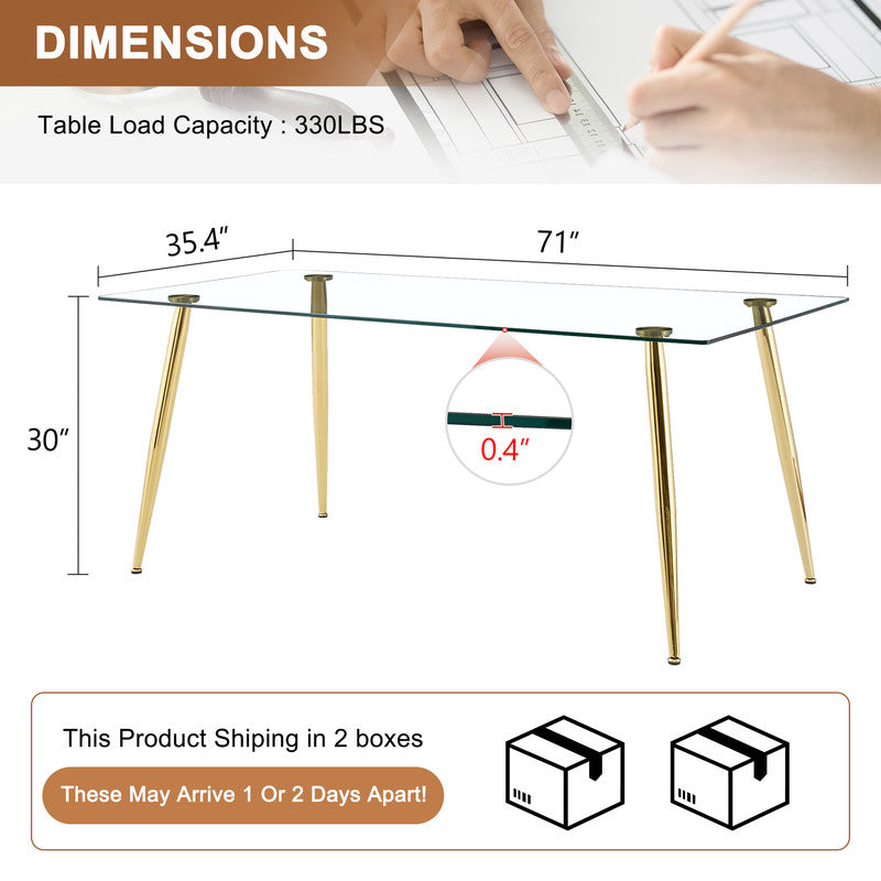 Tempered Glass Dining Table for 6, Sudica 71 inch Modern Rectangular Glass Kitchen Table with 4 Silver Plating Metal Legs