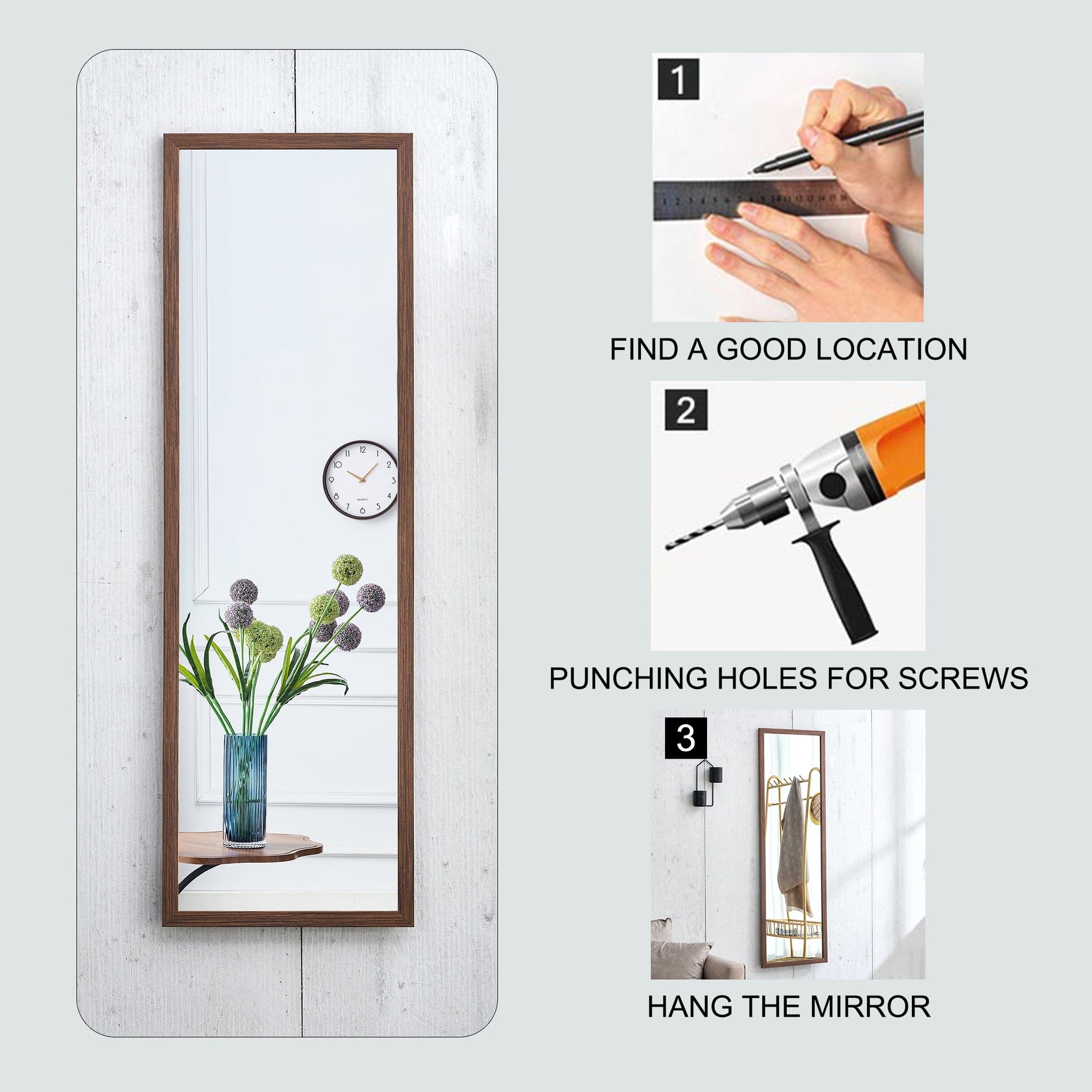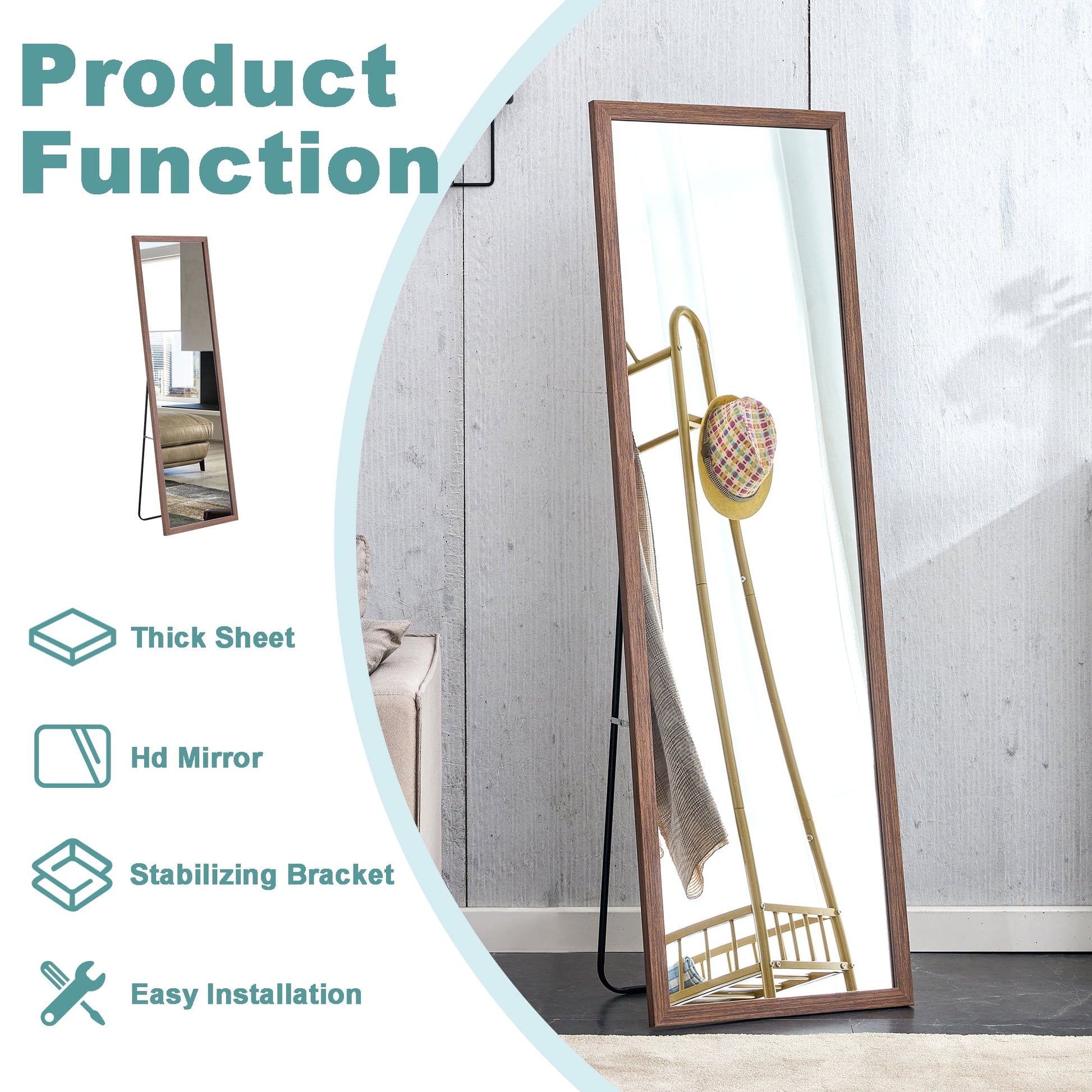 - ¡¾Wide Application¡¿Our versatile full-length mirror can be used as a standing mirror, easily placed on the floor, as a wall-hanging mirror, or even as a leaning mirror against a wall. Its adaptability makes it the ideal choice for any space in your home.