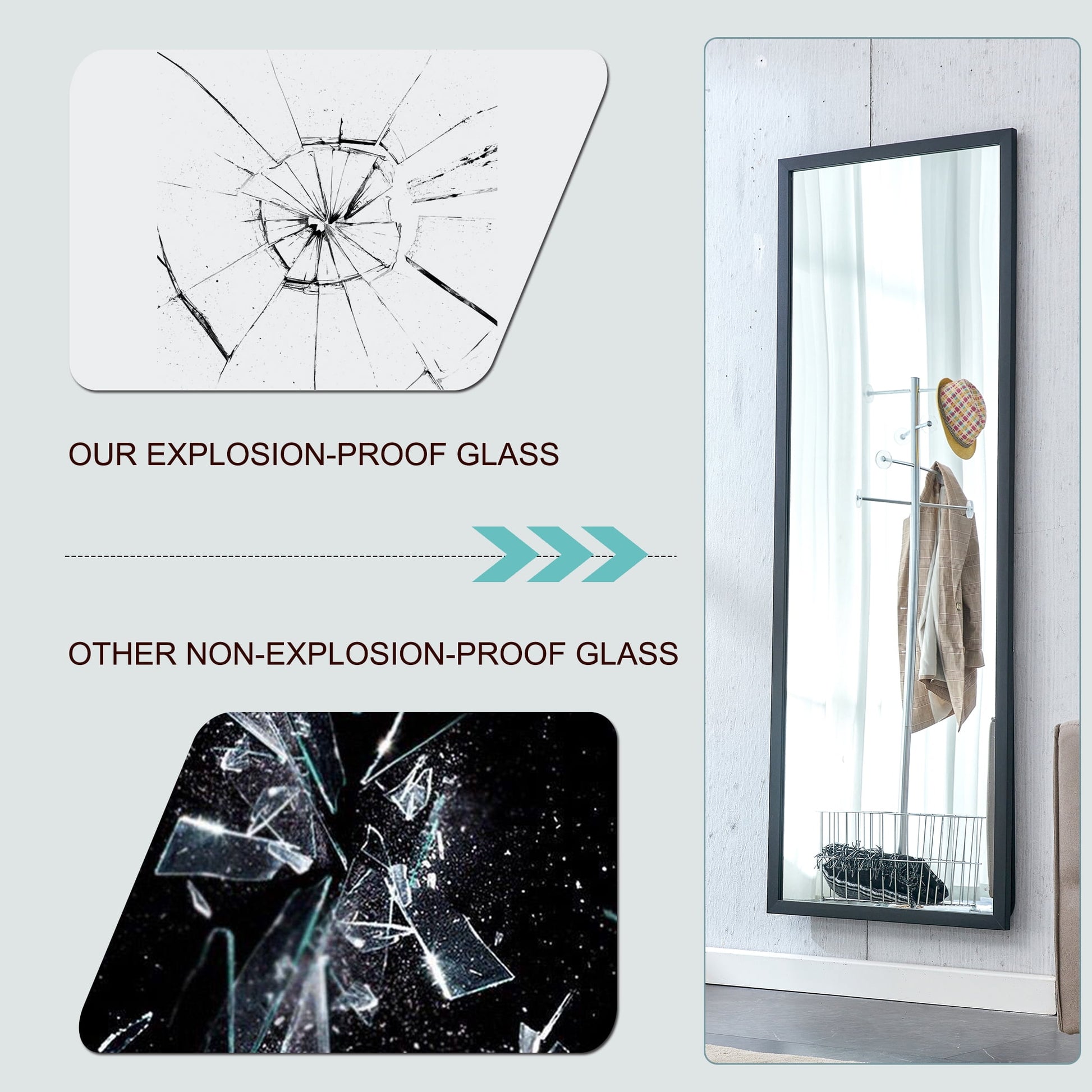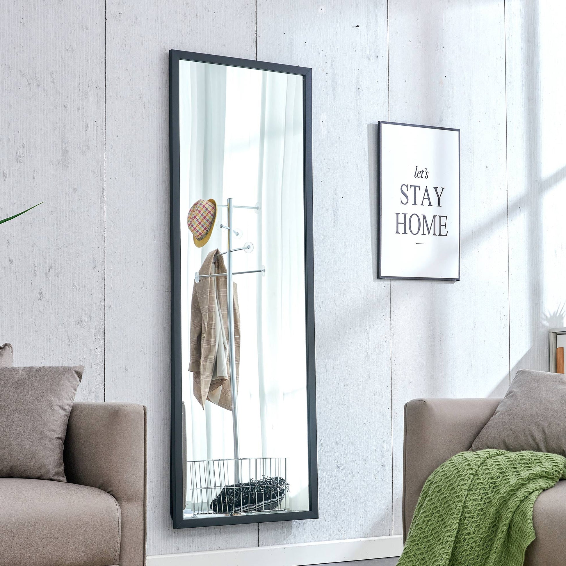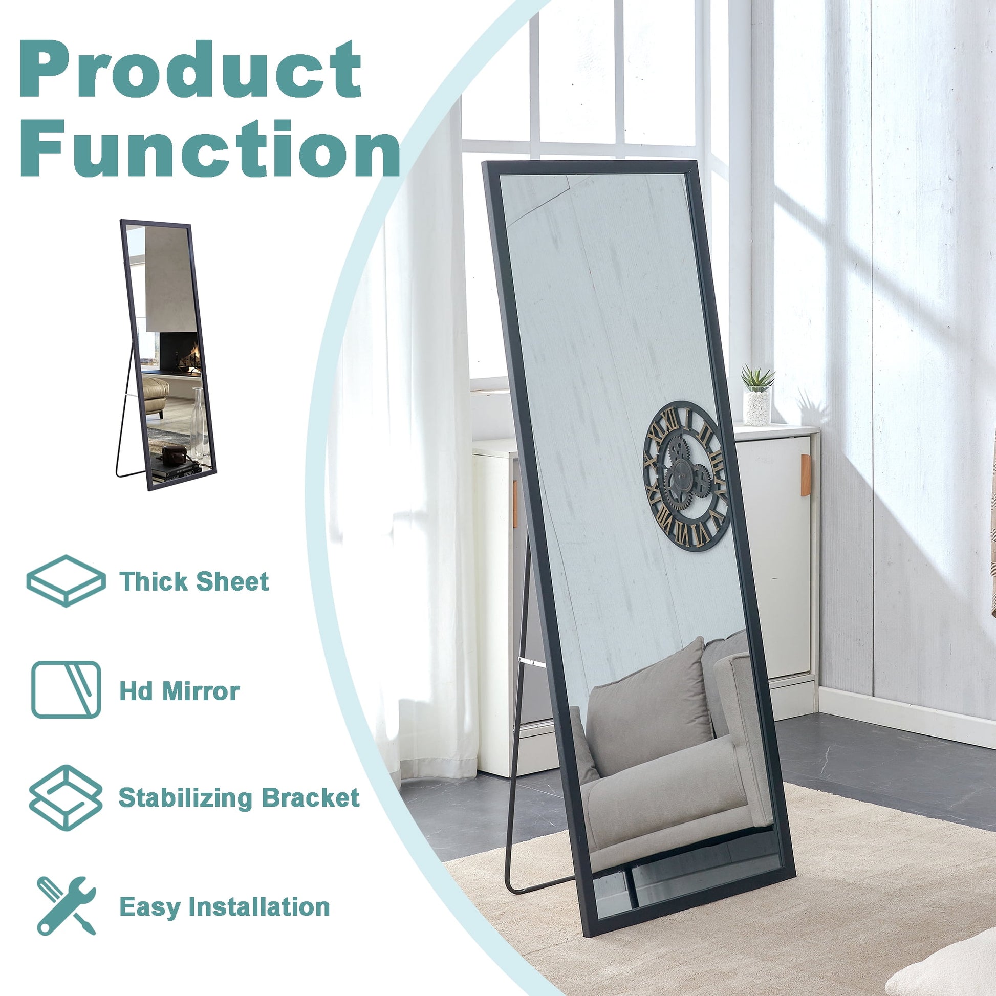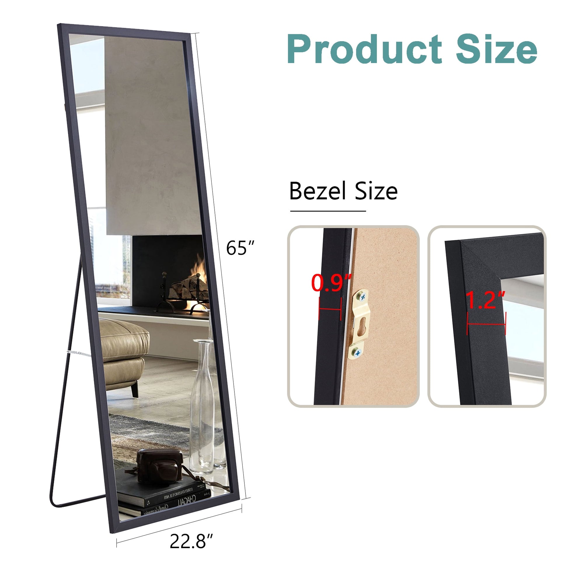 Our full-size standing mirror was upgraded with thicker solid wood frame that not only adds to its beauty with a warmth appearance but also ensures long-lasting use. The wood feature of the frame offers a modern and elegant texture. The mirror comes equipped with hooks on the back for easy wall hanging, providing a space-saving solution when mounted vertically. Additionally, the standing holder allows the mirror to be leaned against any wall in various rooms such as the bedroom, living room, or bathroom.