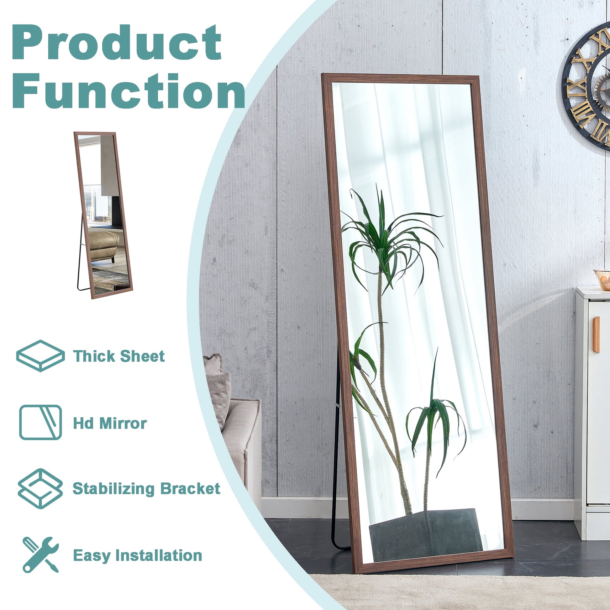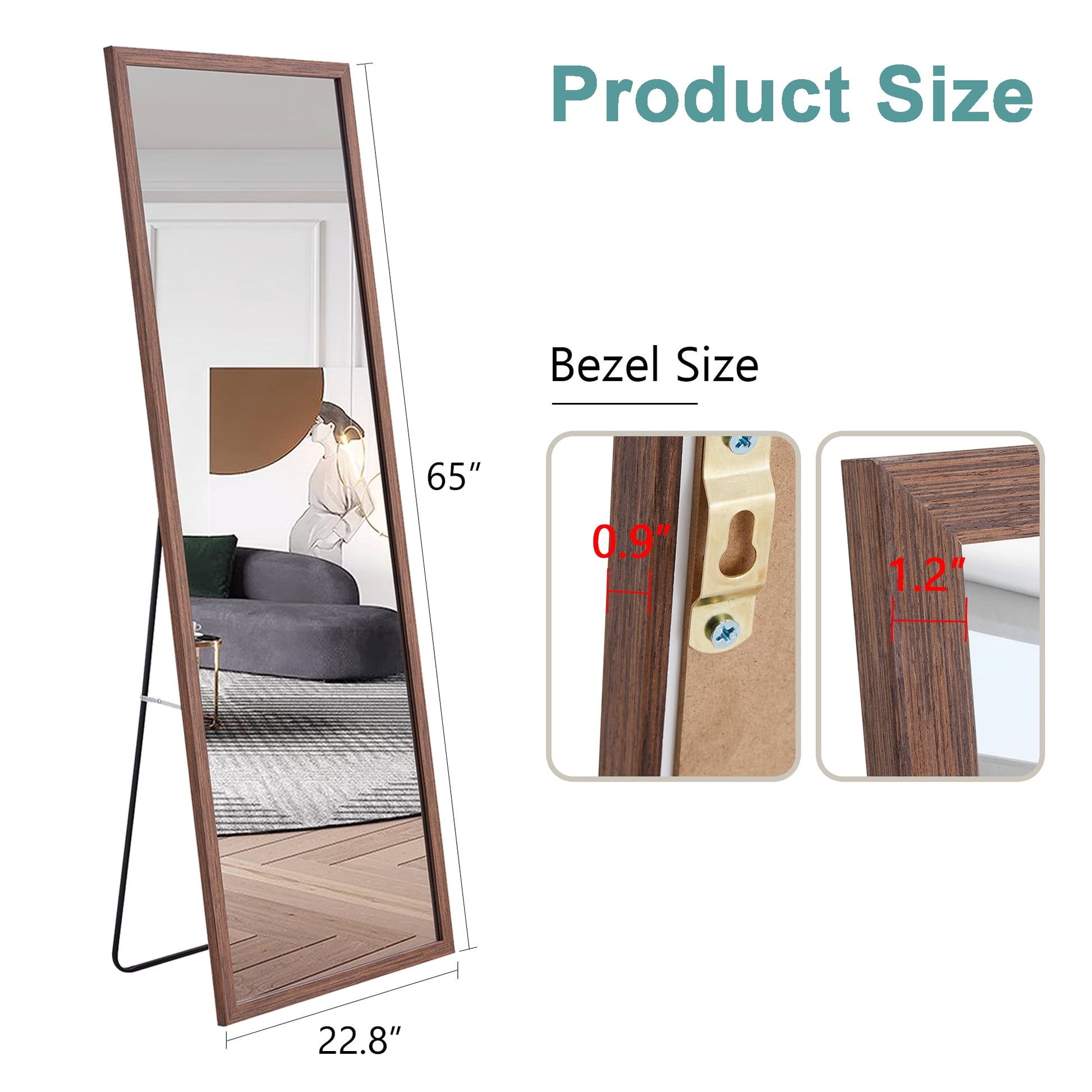 Wood Floor Mirror, 65"x 23 inch Sudica Thick Wooden Frame Full Body Mirror with Stand, Wall Mirror for Living Room, Brown
